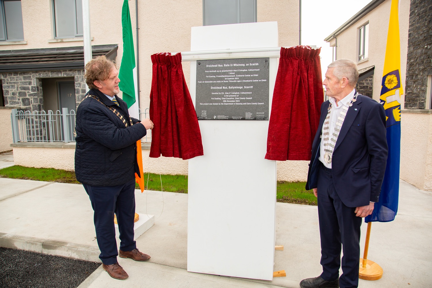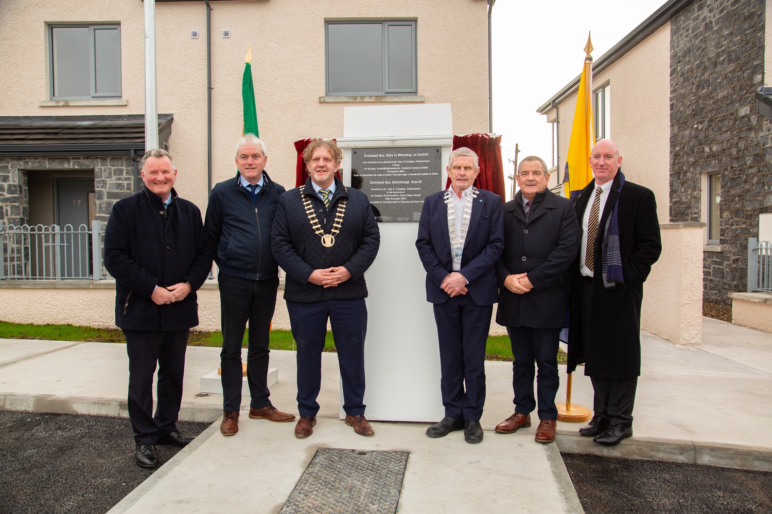 Officially opening both housing developments Mayor of Clare, Cllr Alan O’Callaghan (FF) said the occasion was “a significant milestone for County Clare, in particular the communities of Sixmilebridge and Scarriff, as we officially open these social housing developments, providing high quality, sustainable homes for residents. These new homes are a foundation for stability and growth, ensuring that families and individuals can thrive in our community”.