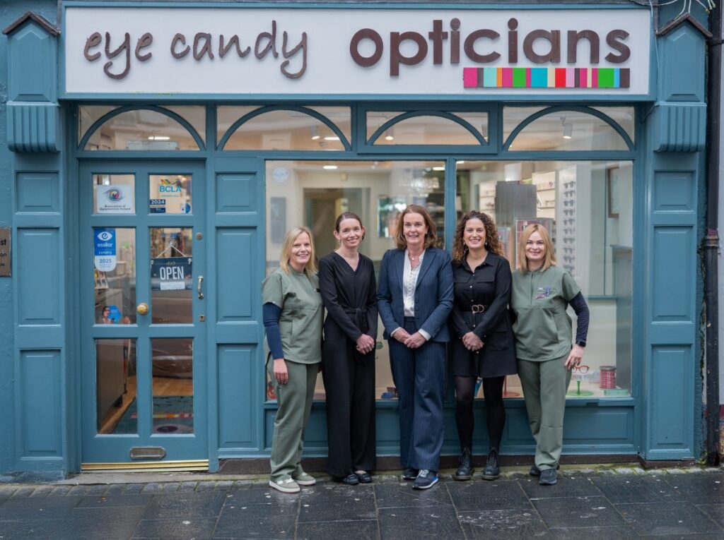 Manager Mary Burke, optician Sinead Chambers, proprietor and optometrist Linda Brannigan (Kochhur), optician Michelle Manning and Kamila Chandler. Photograph: Tom Micks EYE CANDY Opticians is celebrating 20 years of caring for the eyes of the people of Clare.