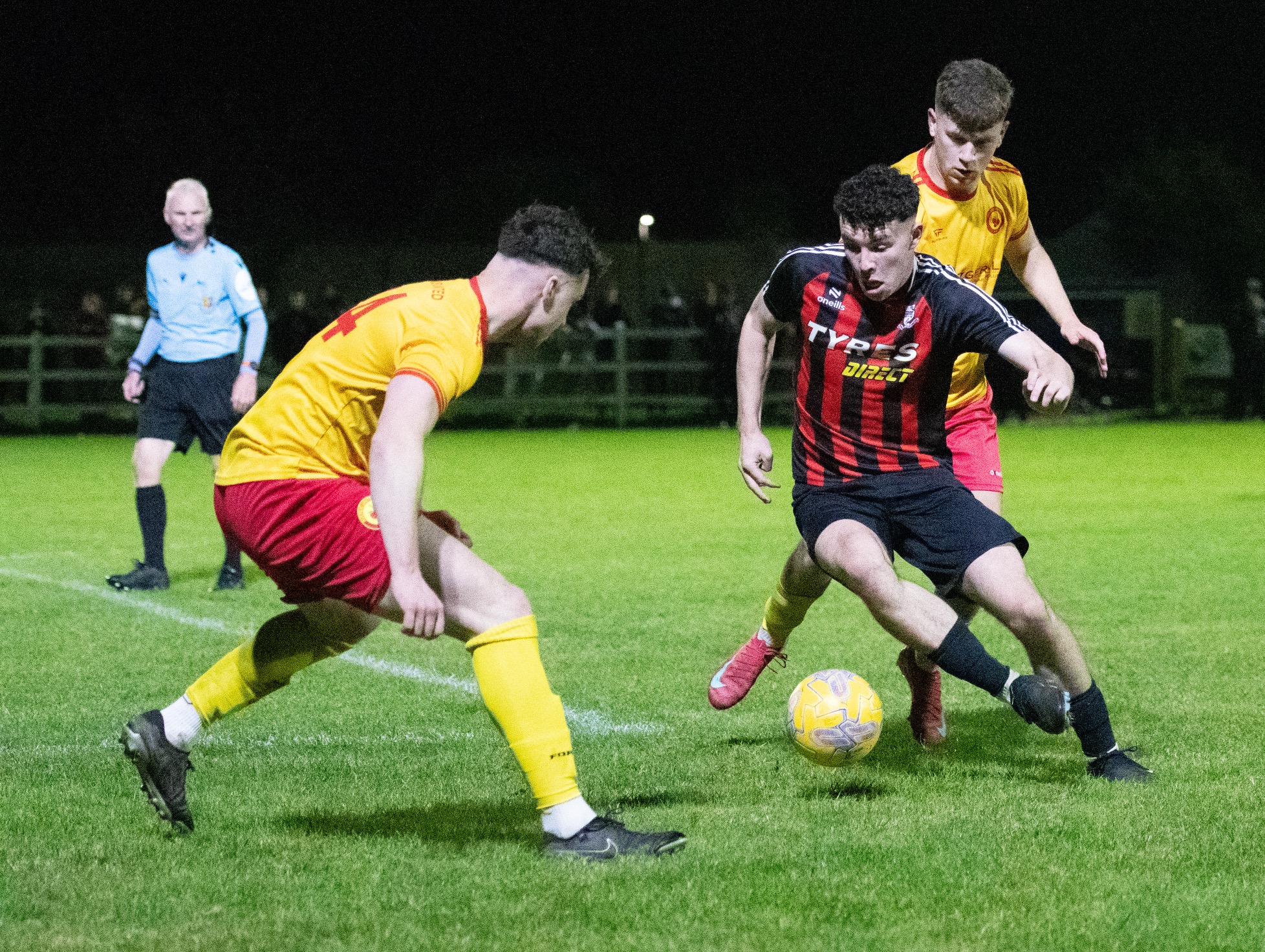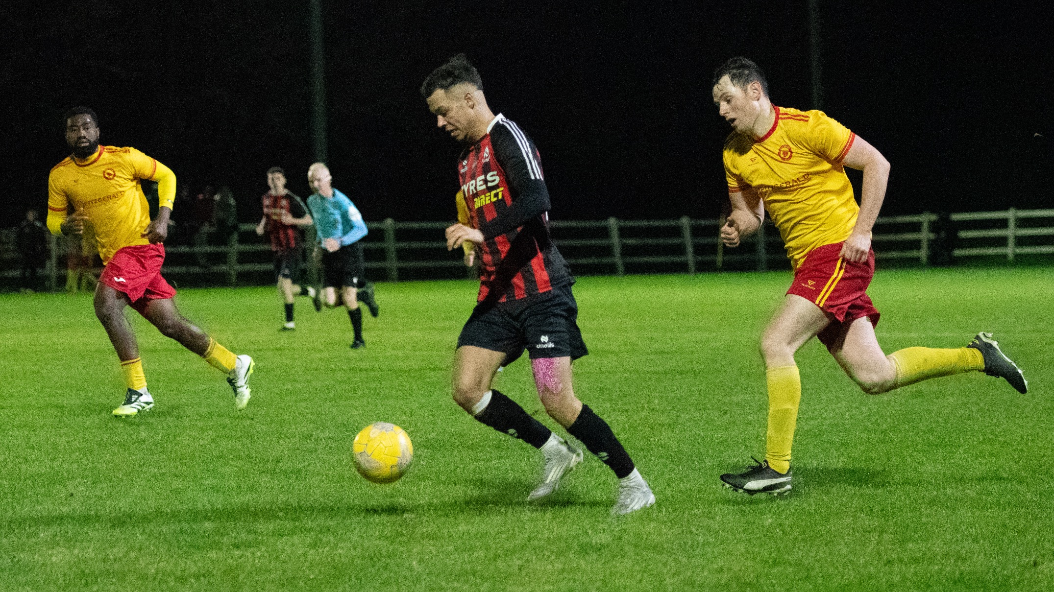 Another off-timed challenge saw referee Michael Rock hit the deck after a collision with Eoghan Thynne.