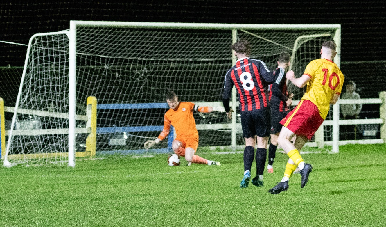 Within the first fifteen minutes of the tie, Avenue had two big chances. An excellent pass from Conor Finnucane put Ryan Corcoran through but his shot was saved by John Mulready. Corcoran beat Scott Kirkland for pace in the next attack but was only denied by the crossbar.