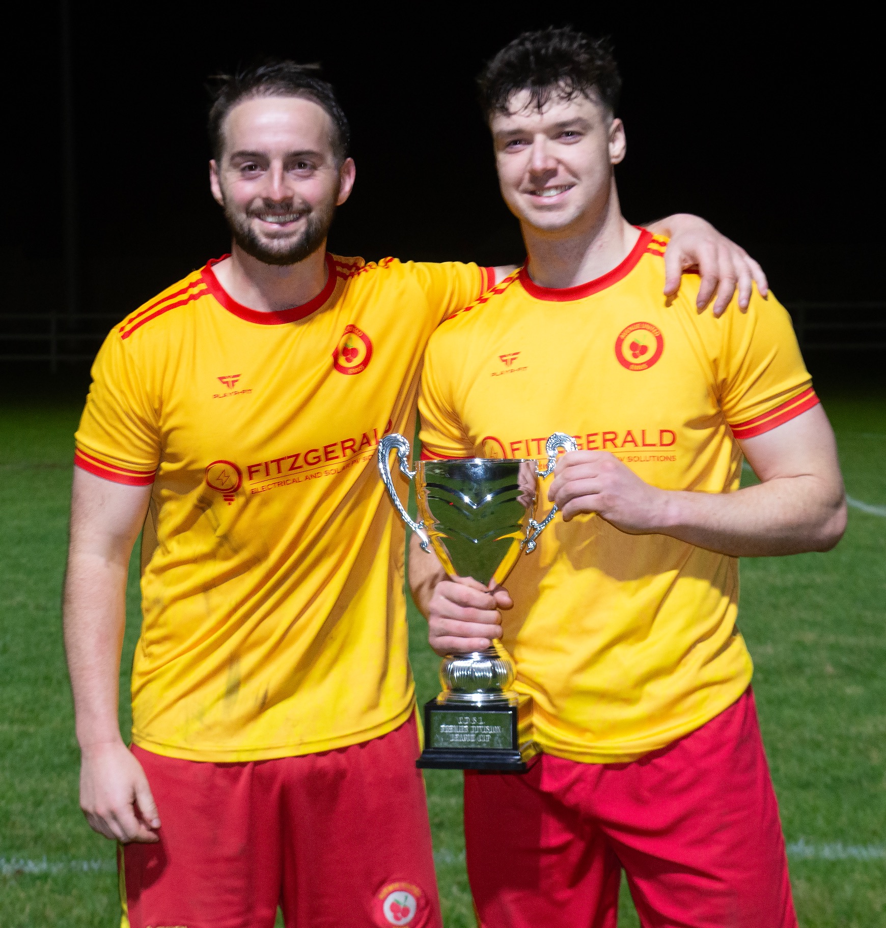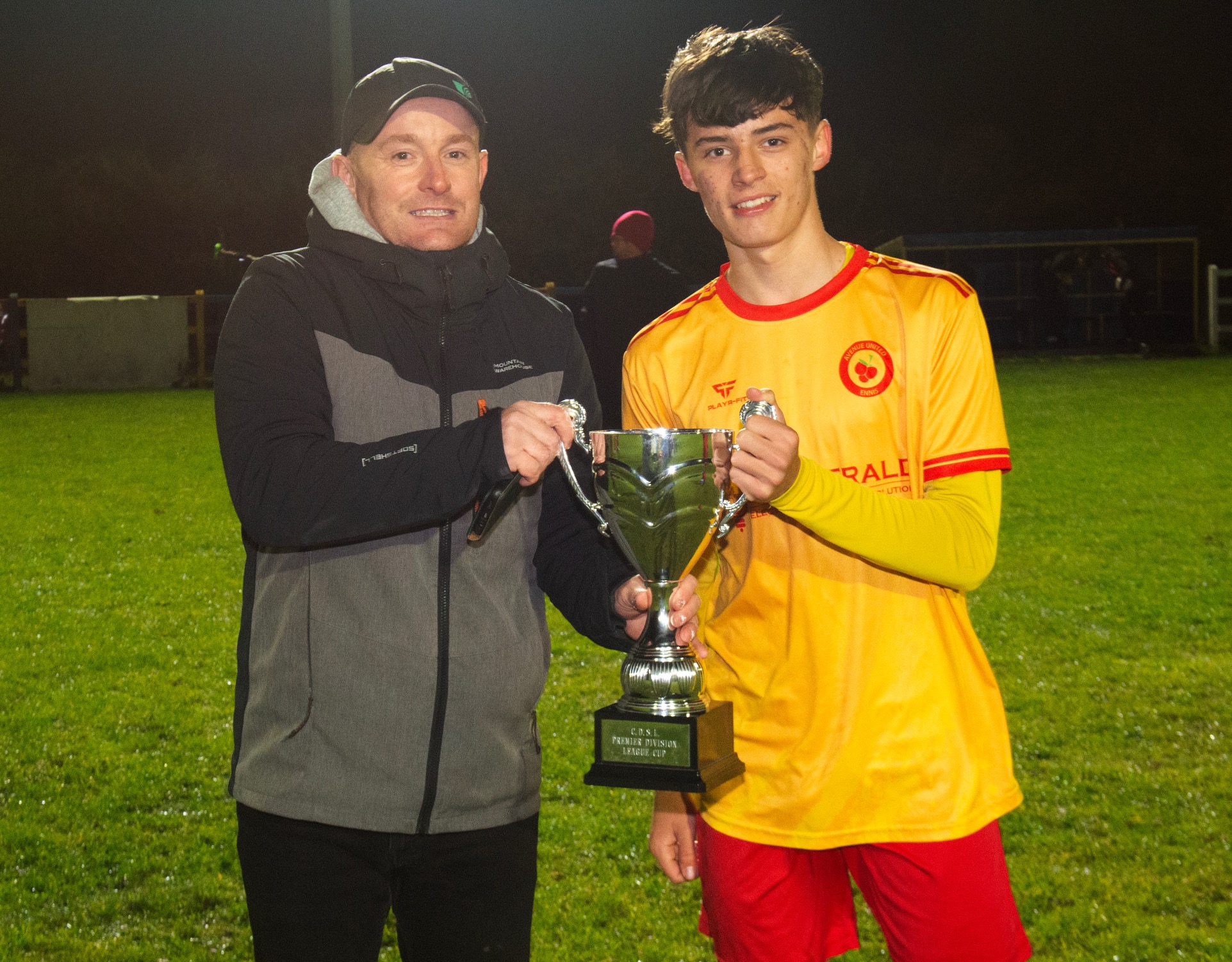 CDSL Treasurer Frank Gormley presented the Hugh Kelly Cup to Avenue Utd vice captain Jamie Roche following the game.
