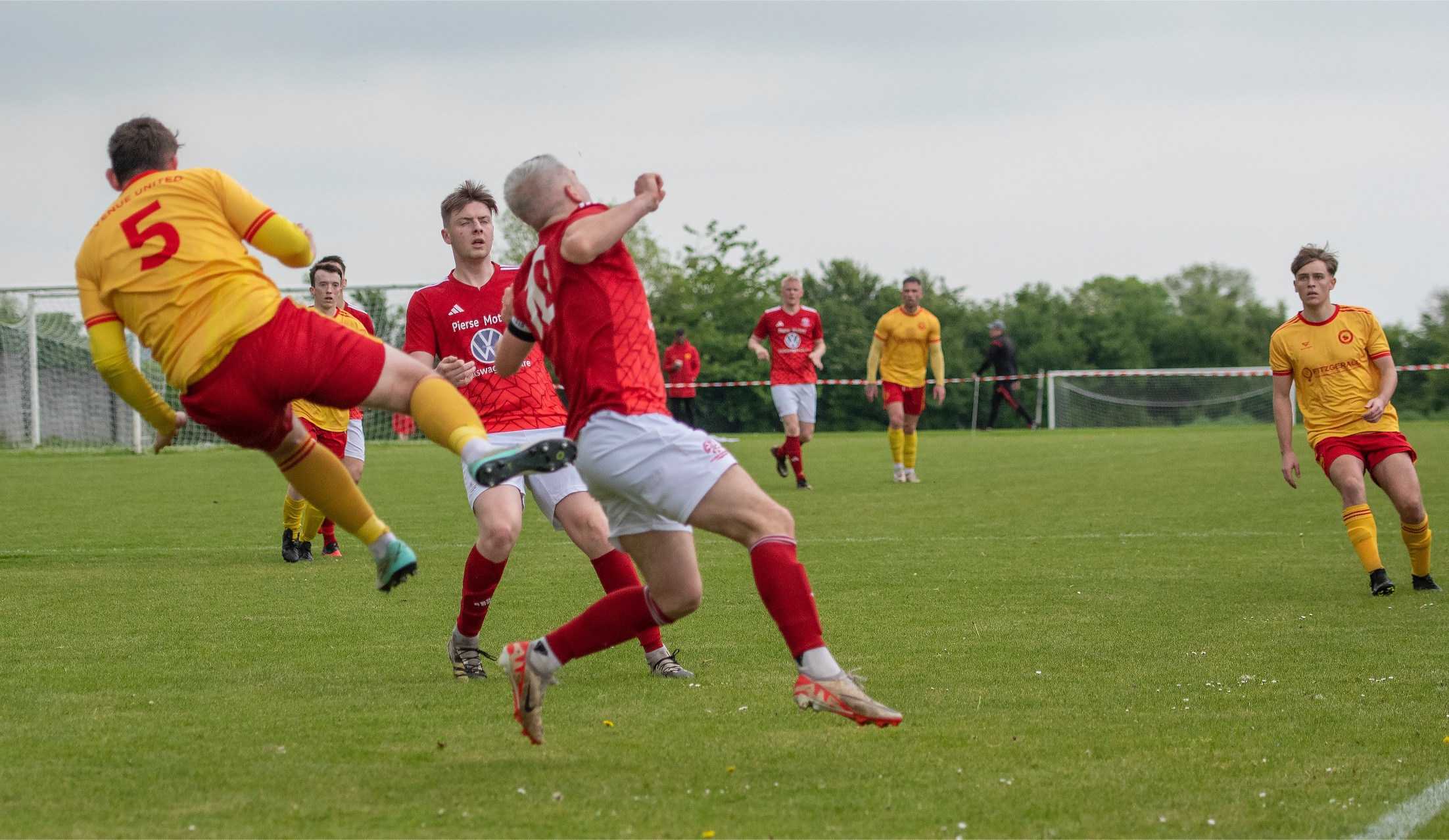 This gave Avenue Utd further momentum and they began to dominate. They had three corners in a row, the best chance arising when a Jamie Roche corner was headed into the six yard box by McGann but Kerin’s shot was blocked by Thynne much to the relief of Newmarket Celtic.