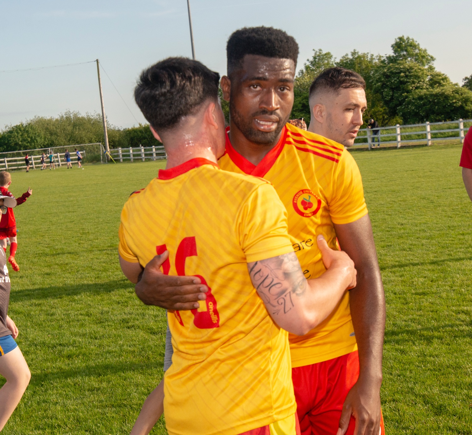 *Avenue Utd players celebrate. Photograph: Joe Buckley