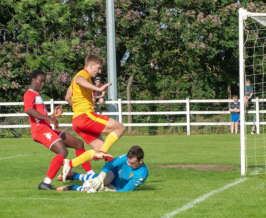 Slight panic around the Avenue goalmouth almost saw Lifford equalise. Nathan Rezende’s free from distance was dropped by goalkeeper Luke Woodrow, alertness here from Lifford would have seen them tap the ball into the net when it spilled but Avenue cleared their lines.