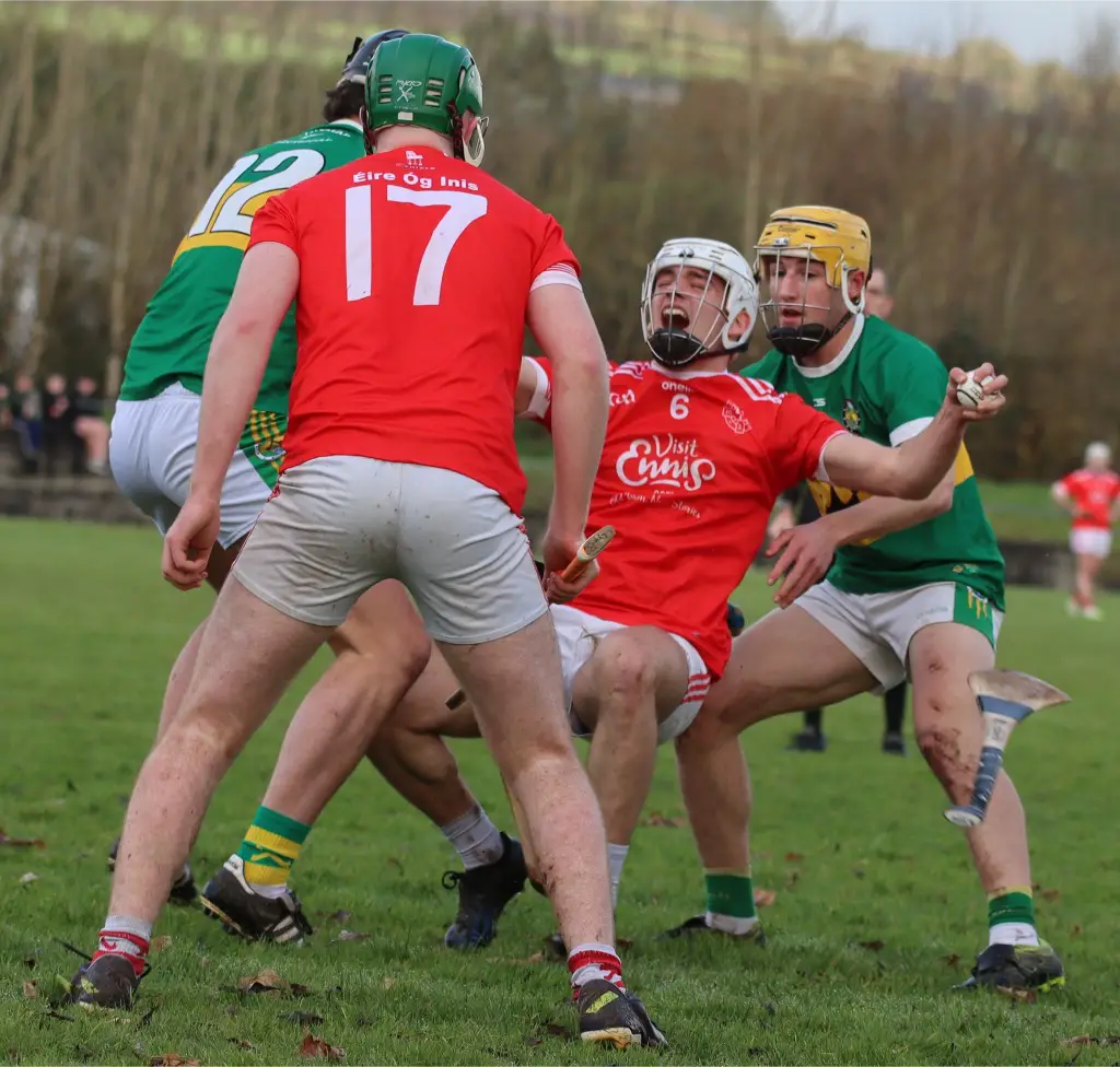 A Luca Cleary goal helped the Ennis side to lead at the break when the score was 1-8 to 0-9. It was a fairly evenly contested first half with points exchanged on a regular basis.