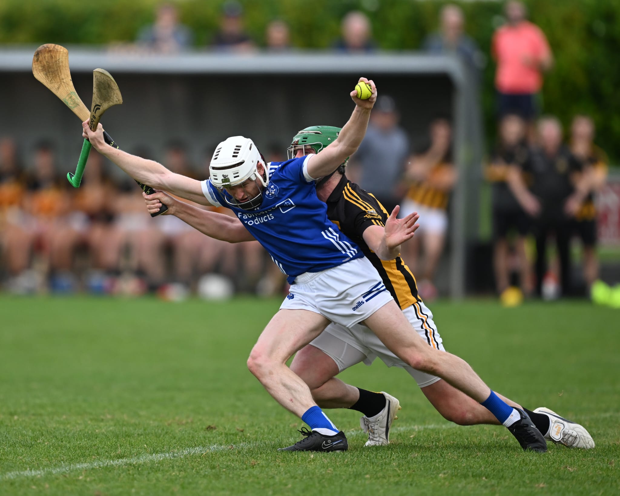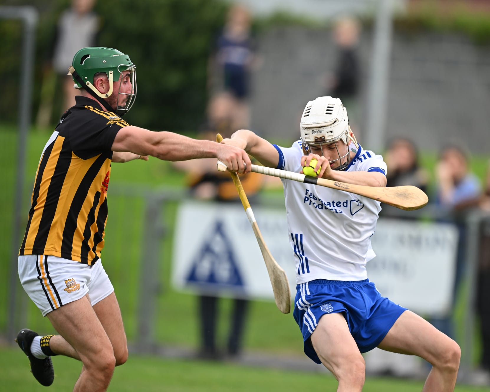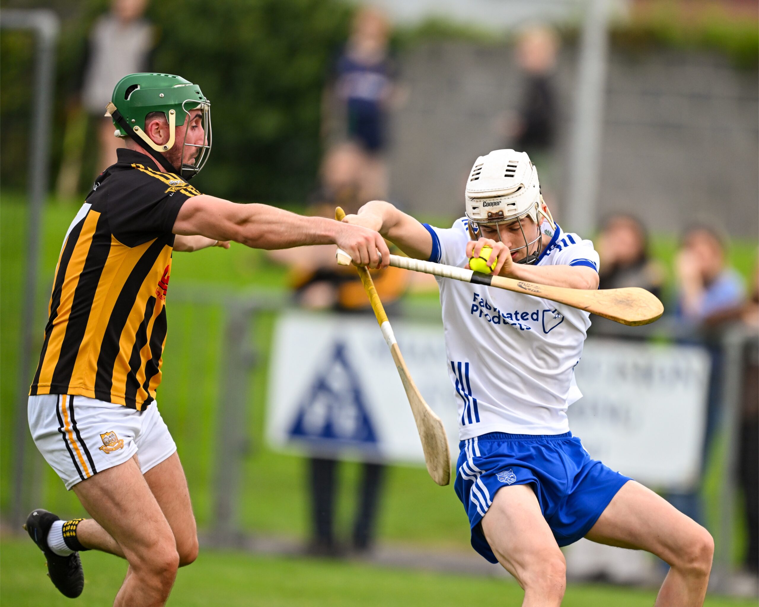 *Cathal Doohan holds off the challenge of Cratloe’s Tadhg Lohan. Photograph: Gerard O’Neill.