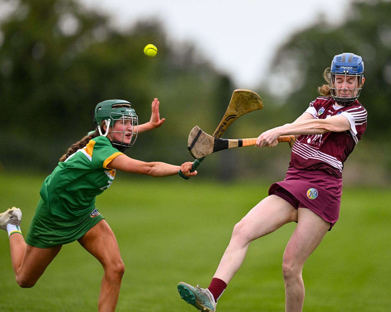*Clare Hehir battles a flying hurley as she brings the sliotar out of defence for Inagh/Kilnamona. Photograph: Gerard O’Neill