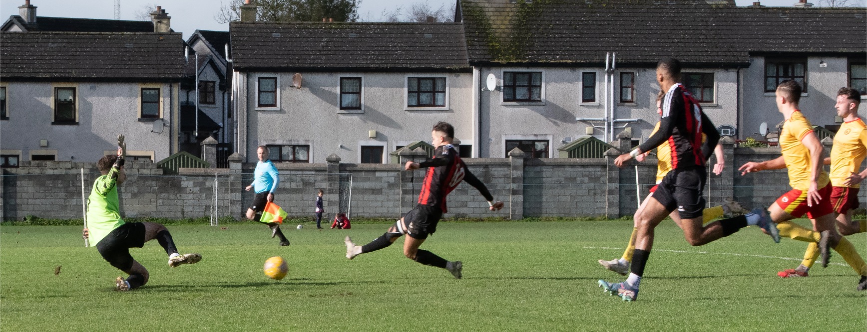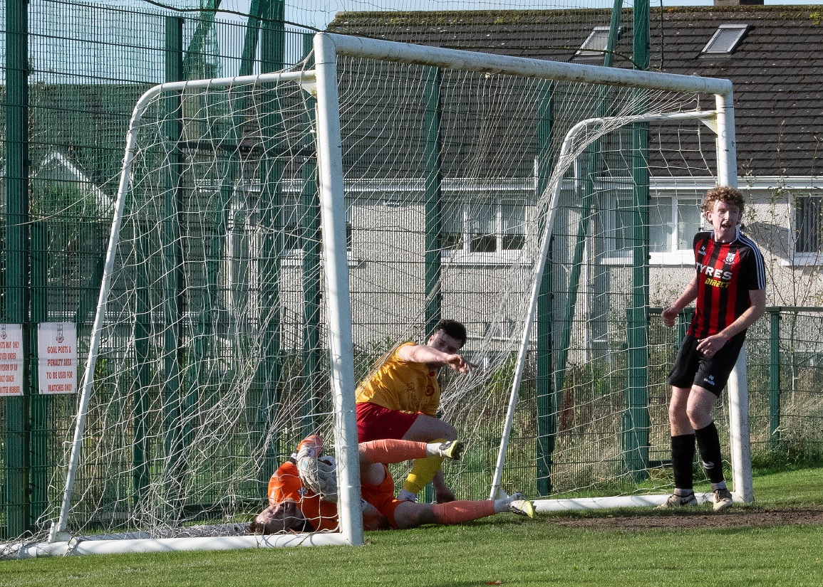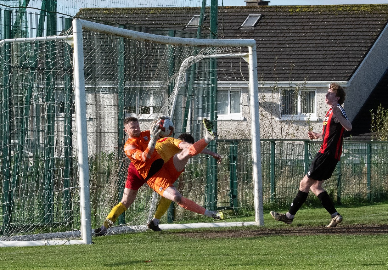 New striker Caleb Lategan had three brilliant opportunities in the first half, firing a one on one effort over the crossbar in the last attack. Sixmilebridge’s side will need their main attacker to be more clinical as the weeks progress. The missed chances were proving frustration as evident by Scott Kirkland’s reaction after setting up his teammate on thirty four minutes.