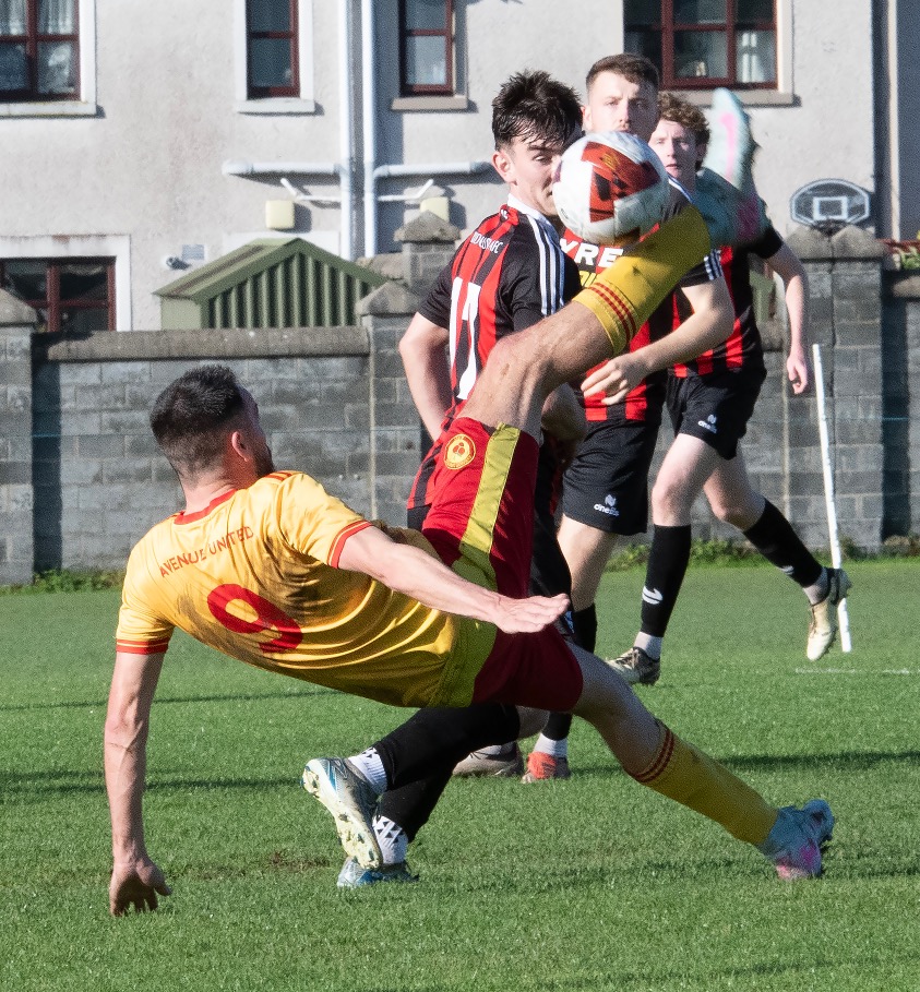 For the opening half, the best chances fell to Bridge Utd. Jack O’Halloran was caught offside on the half hour and a minute later Jamie Roche made a precision tackle as the pressure was mounting on the Avenue defence.