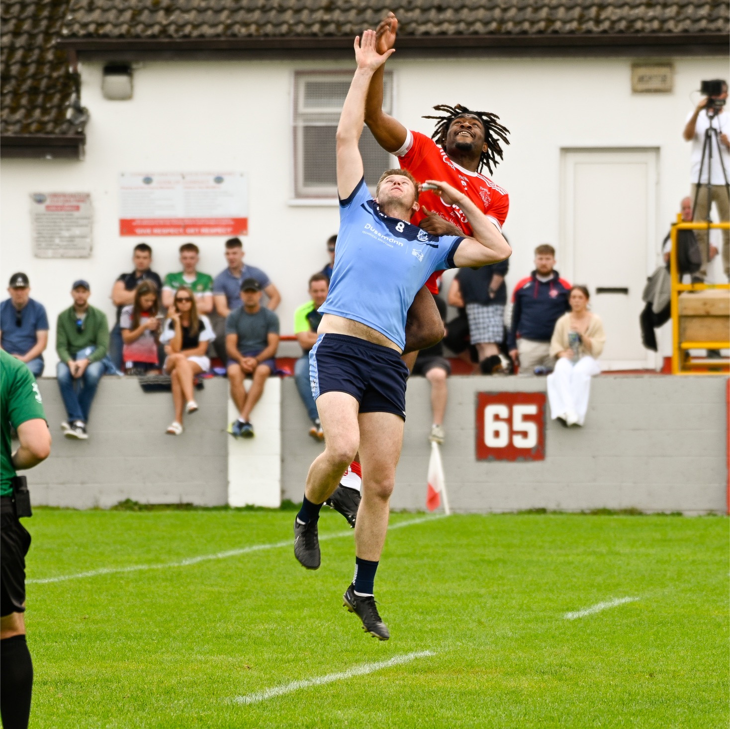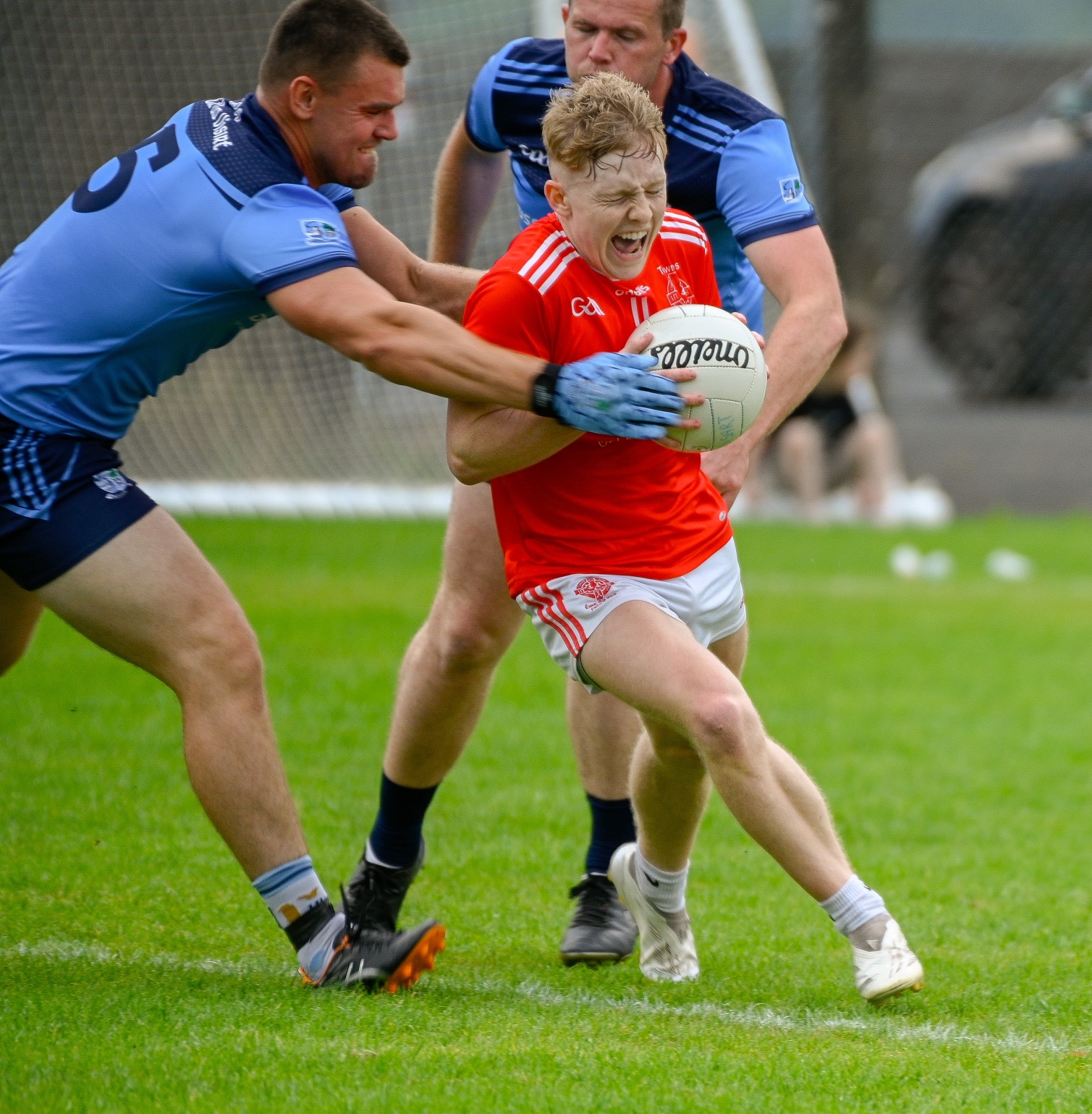 *Aaron Fitzgerald punches the ball from Keith O’Connor. Photograph: Mike Brennan