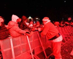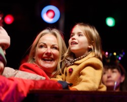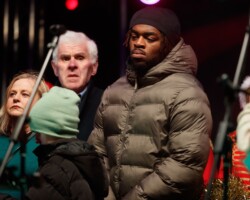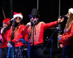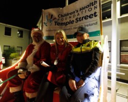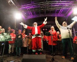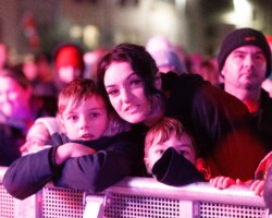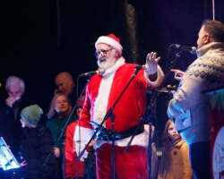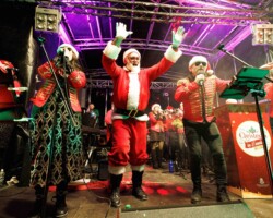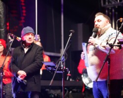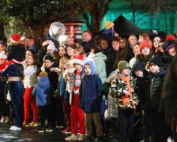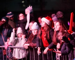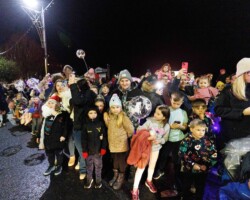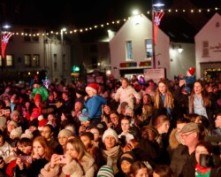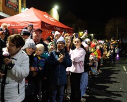 Crowds gathered in Abbey Street car park for the turning on of the Christmas lights with Clare FM’s Colum McGrath acting as MC with the Circus for Ponies back to provide musical entertainment.