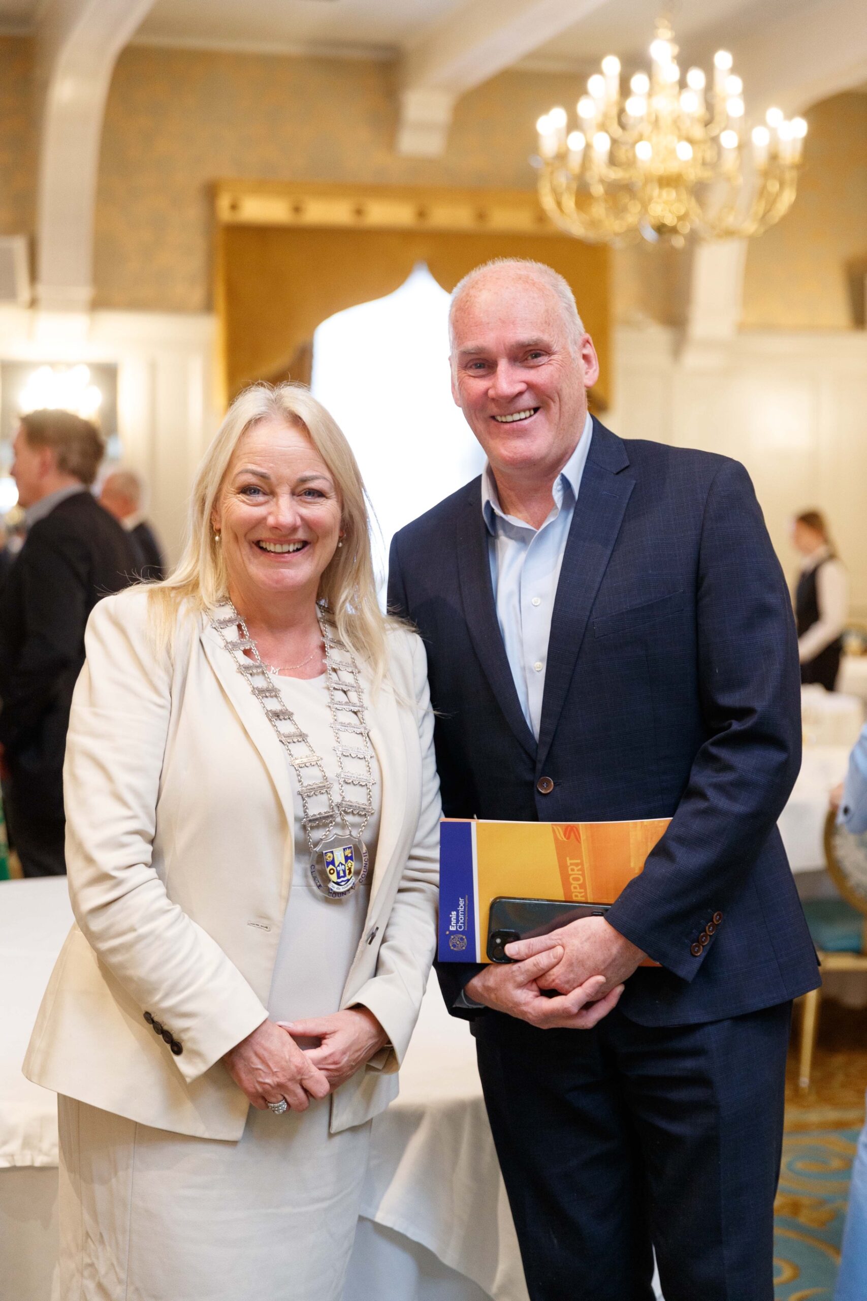 Sheila Lynch President Ennis Chamber, Cllr Alan O’Callaghan, Cathaoirleach Clare County Council, Noeleen Fitzgerald, Director Finance Clare County Council. Photograph: Eamon Ward
