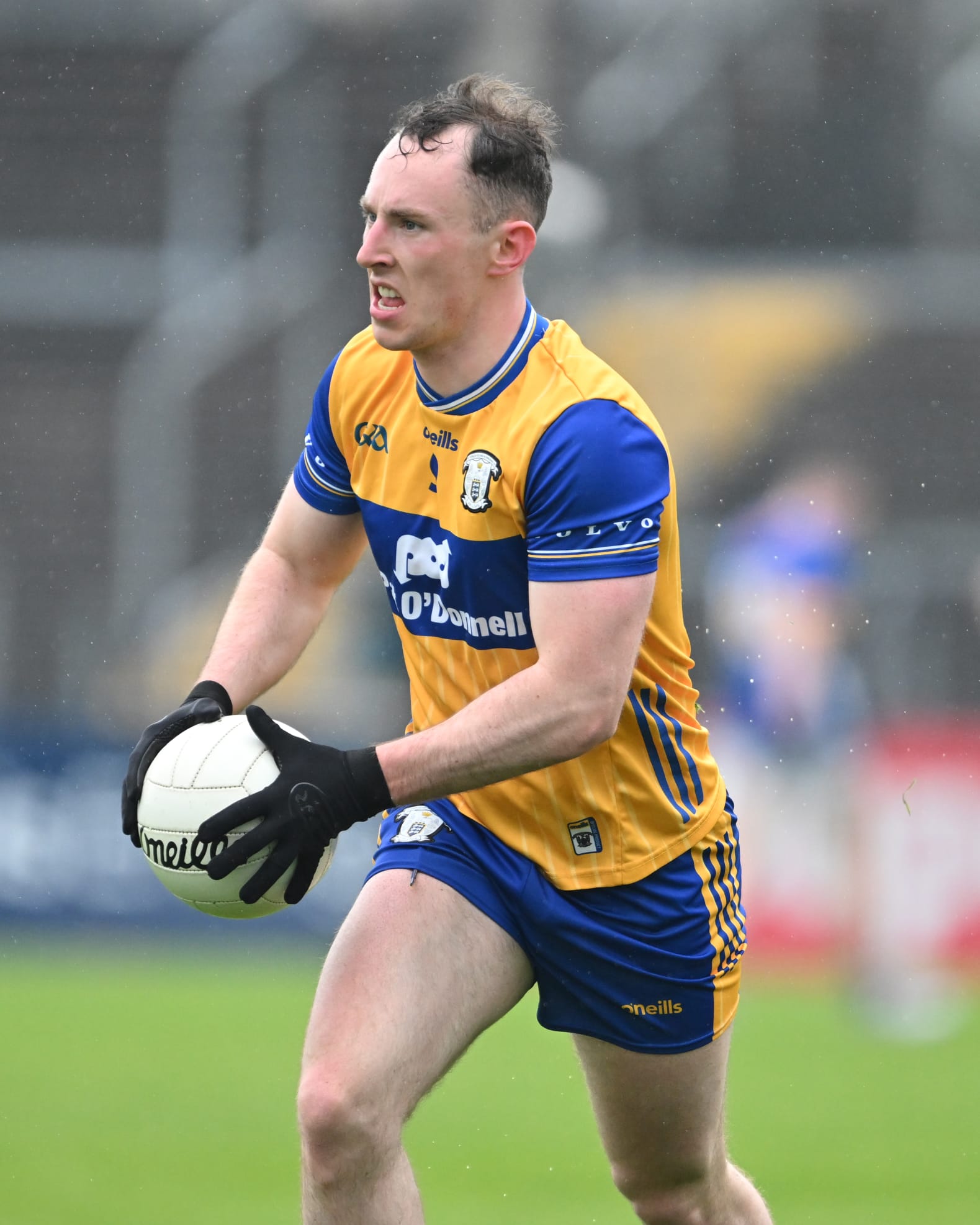 *Alan Sweeney leads the charge for Clare. Photograph: Gerard O’Neill