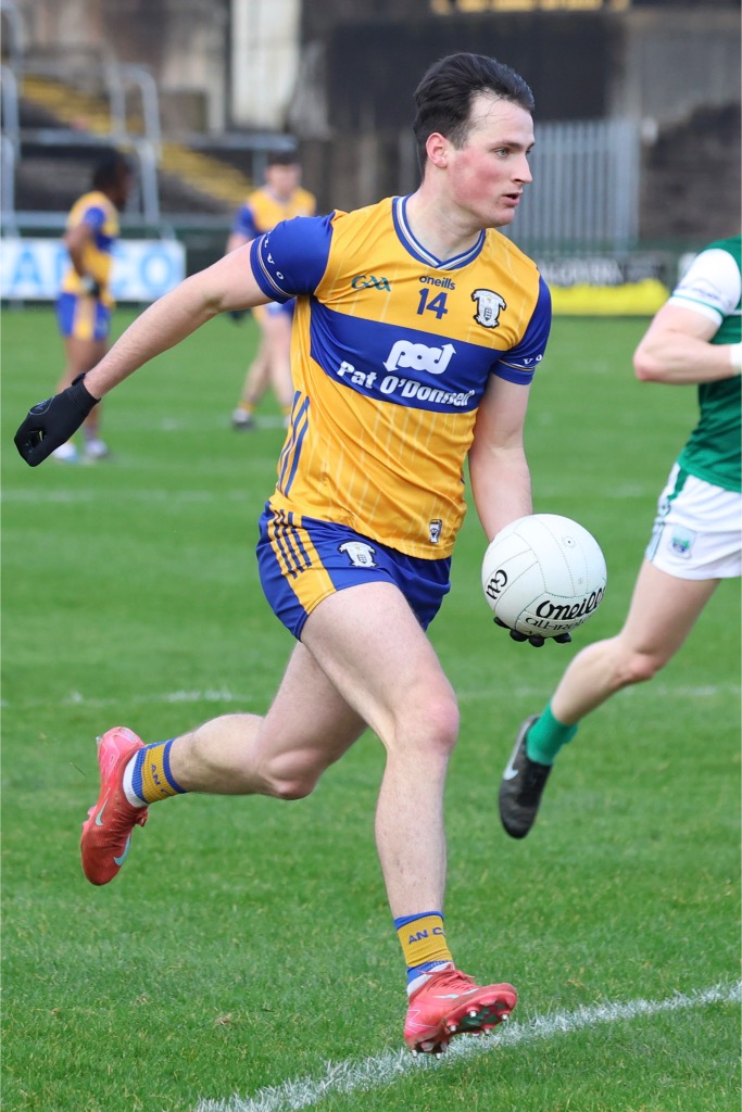 Giving his best display of this year’s league, Alan showed the leadership skills that he has in his locker but had been kept away for the first two rounds. A lion-heart of the side, the Doolin man made two tremendous blocks within four minutes of each other in the closing stages, typifying his attitude of stepping up to show the way. Adapting to corner back, a role which would have been less familiar for Sweeney.