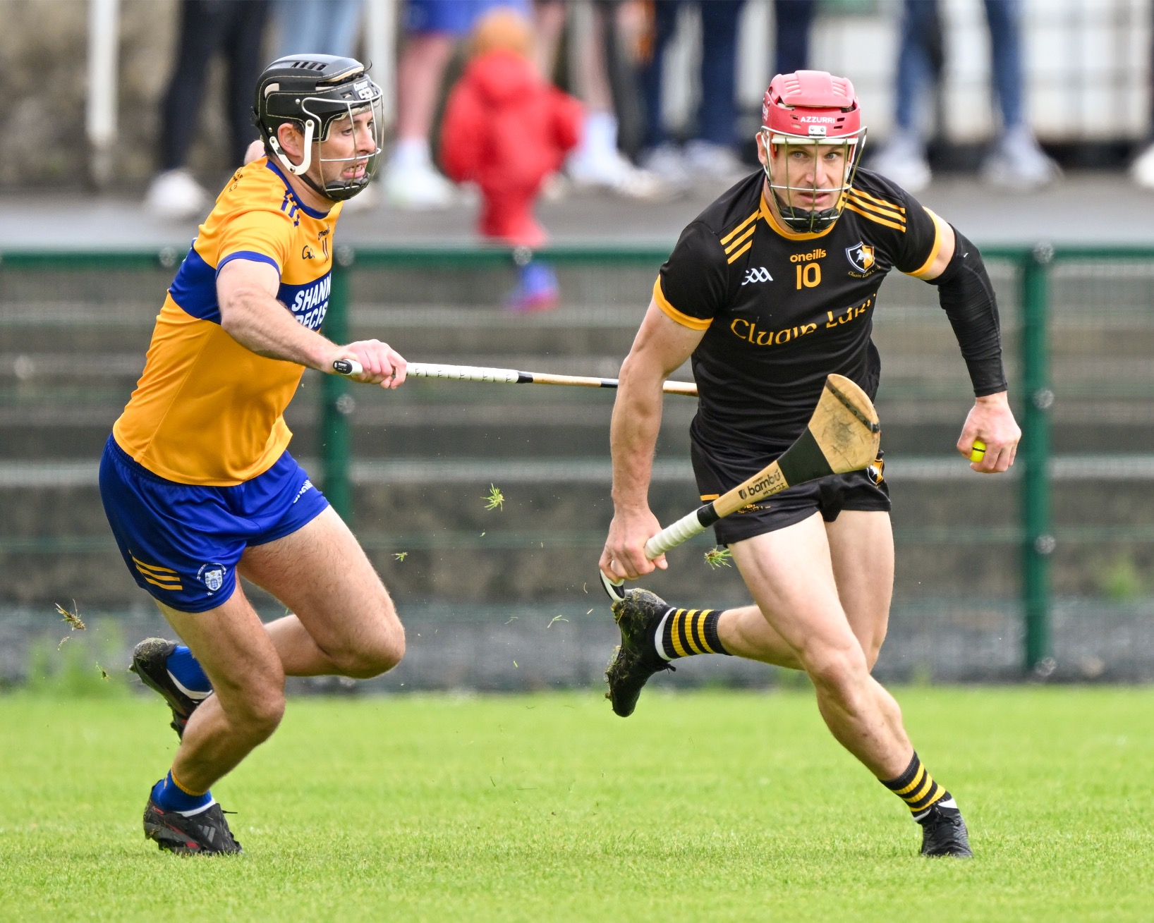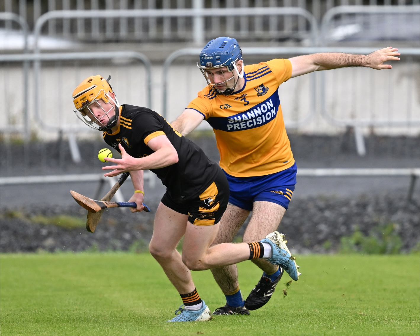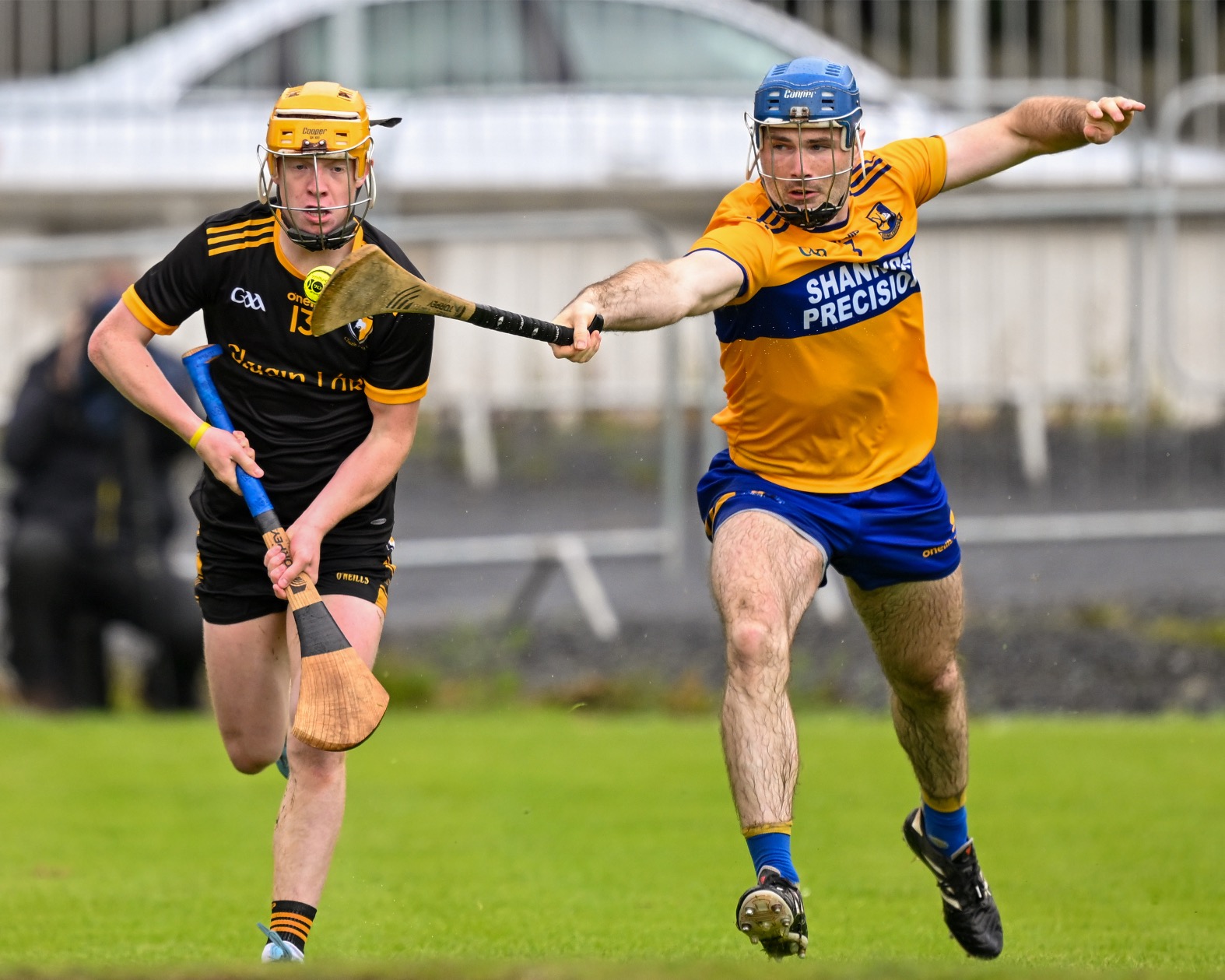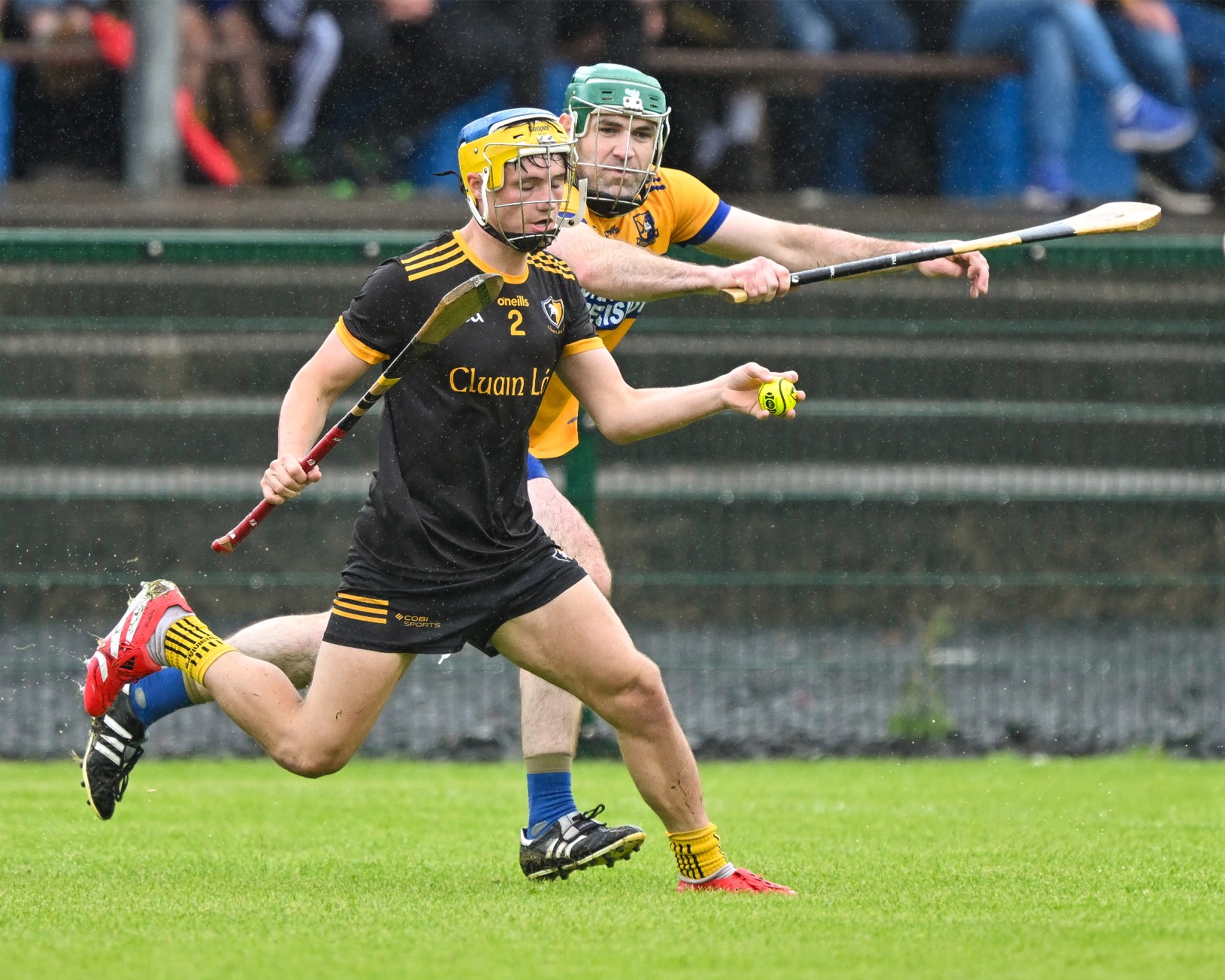 *Clonlara’s Colm Galvin is chased by Luke O’Halloran of Sixmilebridge. Photograph: Gerard O’Neill