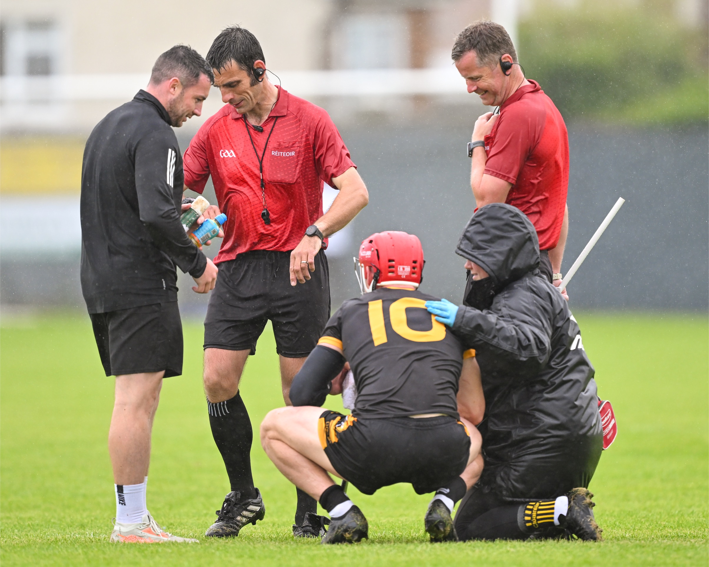 Rain fell throughout the game which made conditions very slippery.