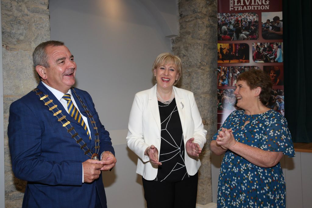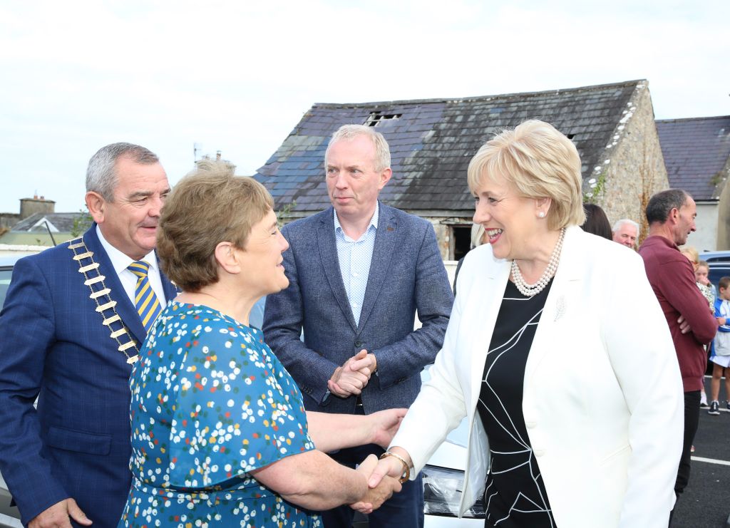 During her second visit to Cnoc na Gaoithe, Minister for Rural and Community Development, Heather Humphreys (FG) spoke of how the auditorium and cultural centre was “a gamechanger”. She officially opened the new amphitheatre on Saturday morning.
