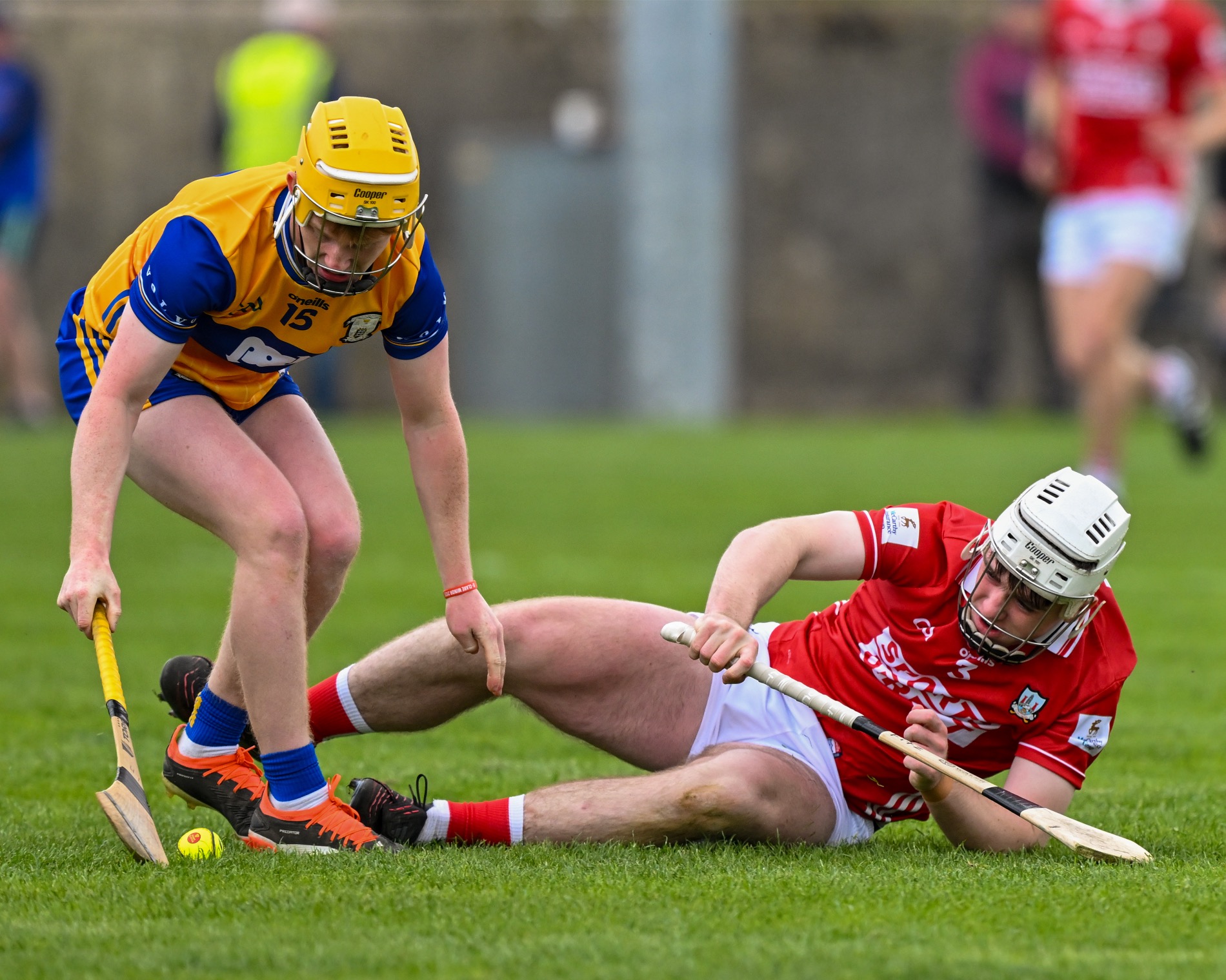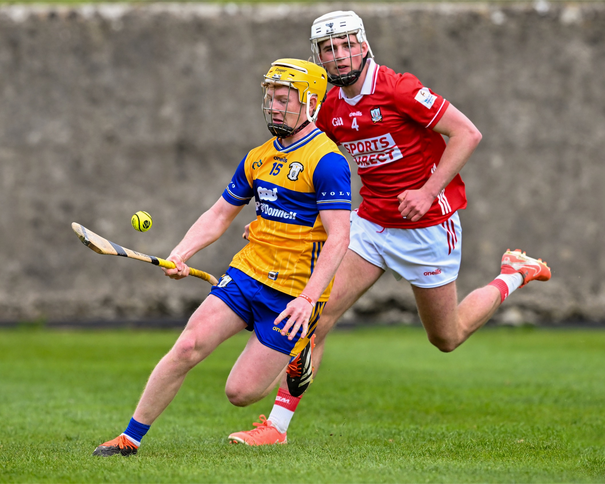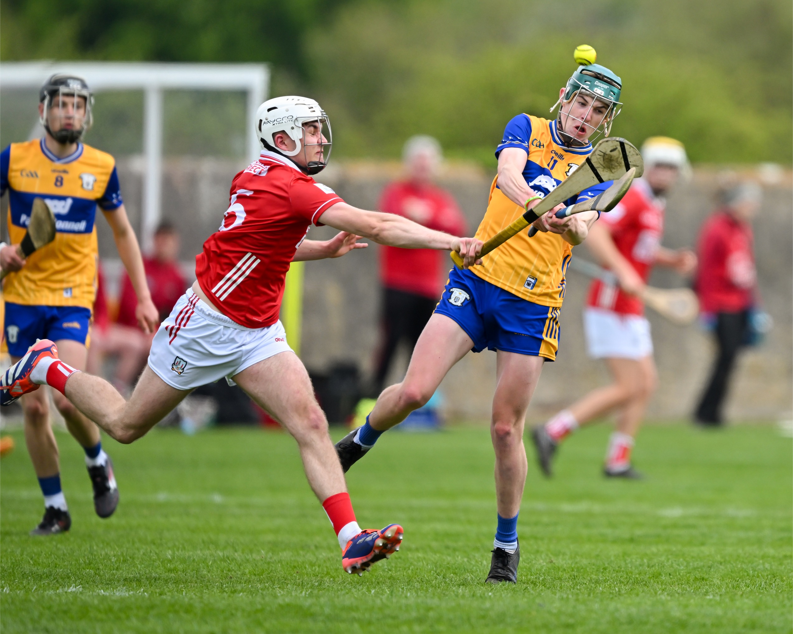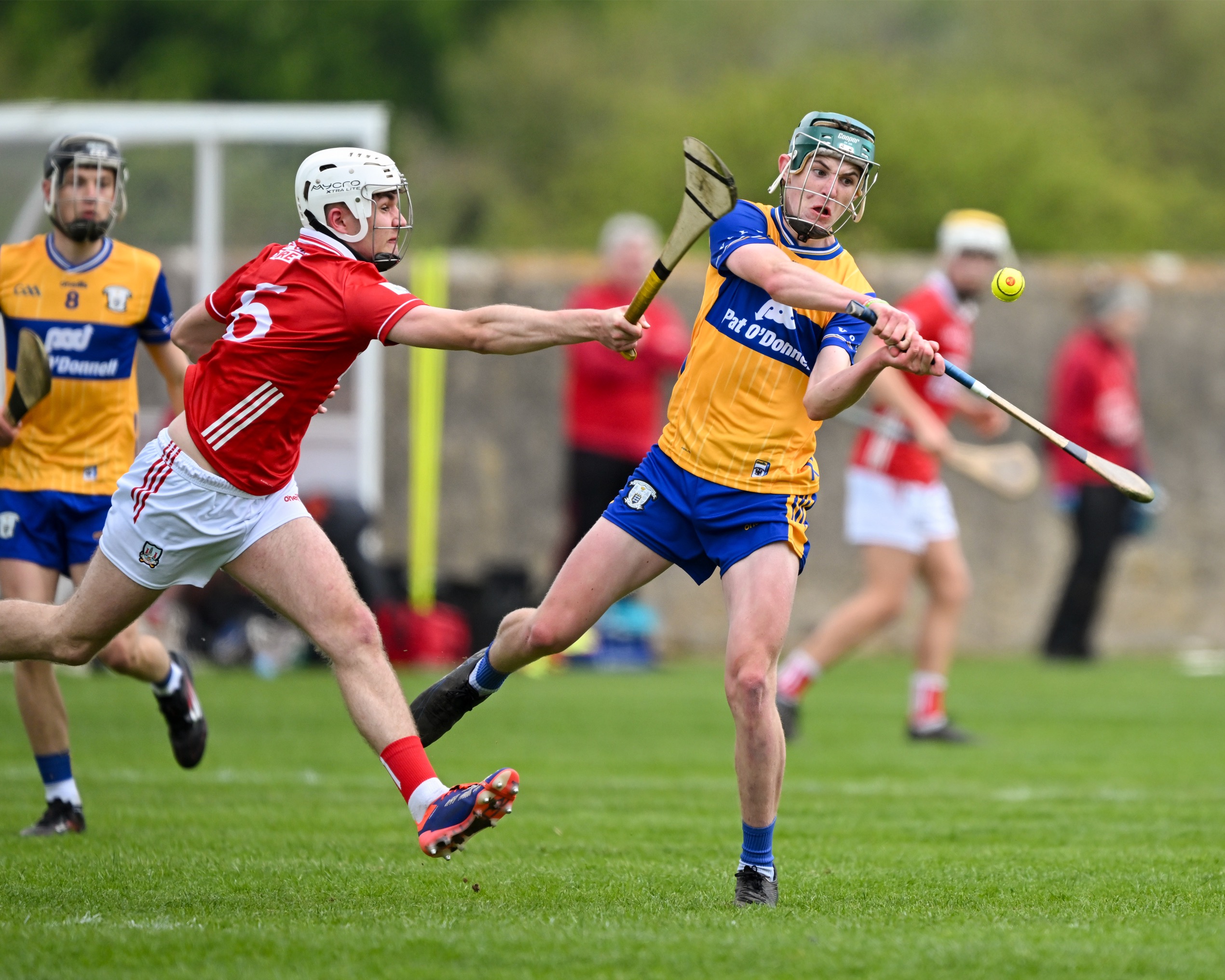 Ian O’Brien had a chance to pull a goal back for Clare following a precision delivery from Rodgers, the Cratloe man controlled the sliotar tremendously but was hooked and his kick of the sliotar went the wrong side of the post. Two minutes later, Cork struck for their second goal with Callum Coffey again raising the green flag.