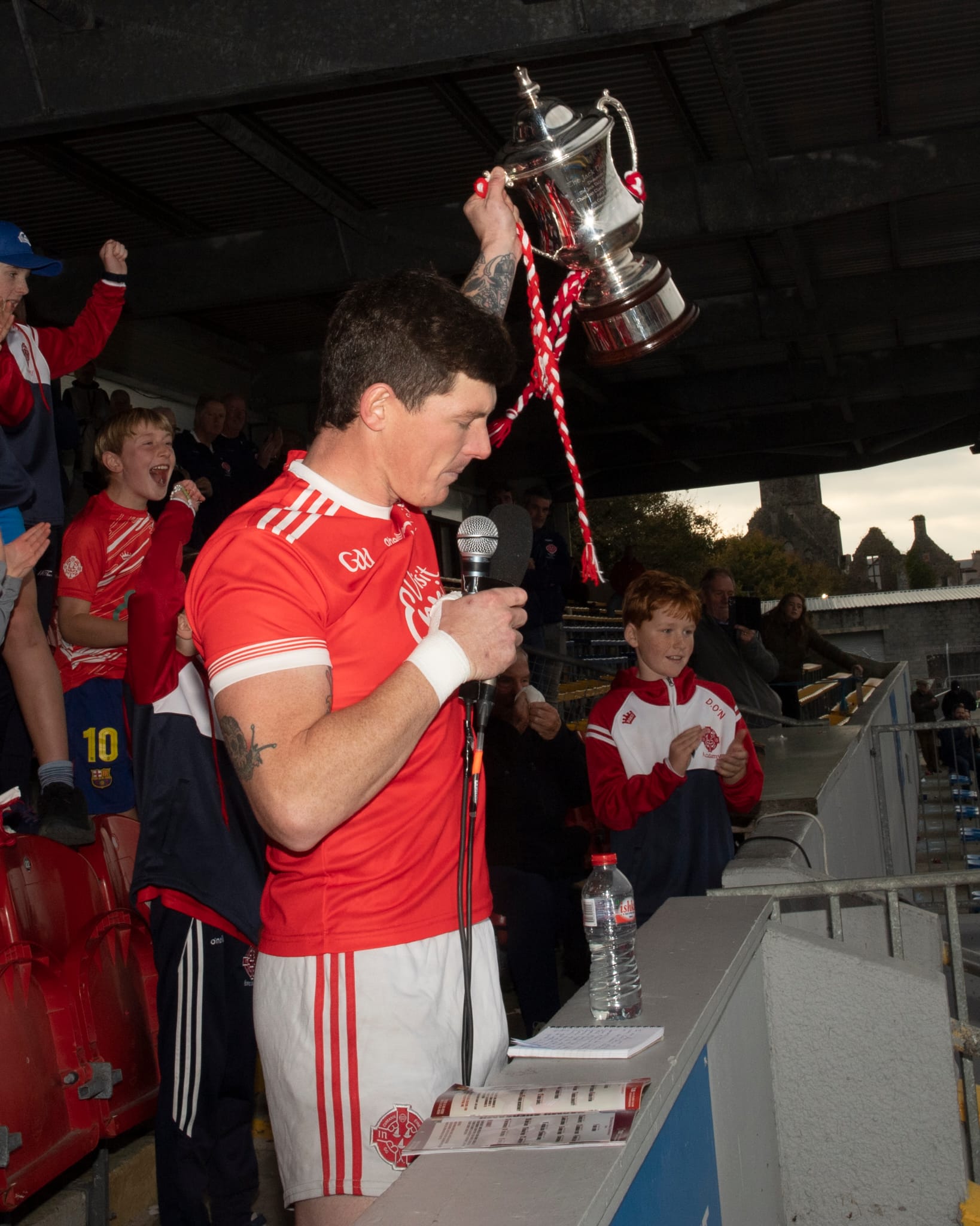 *Aaron Fitzgerald with the Jack Daly and Canon Hamilton. Photograph: Ruth Griffin.