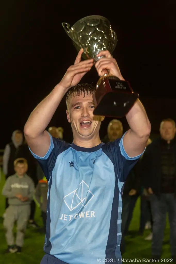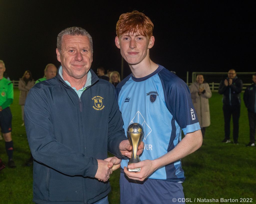 *Jack Devitt accepts the man of the match award from CDSL PRO, Jim Madden. Photograph: Natasha Barton