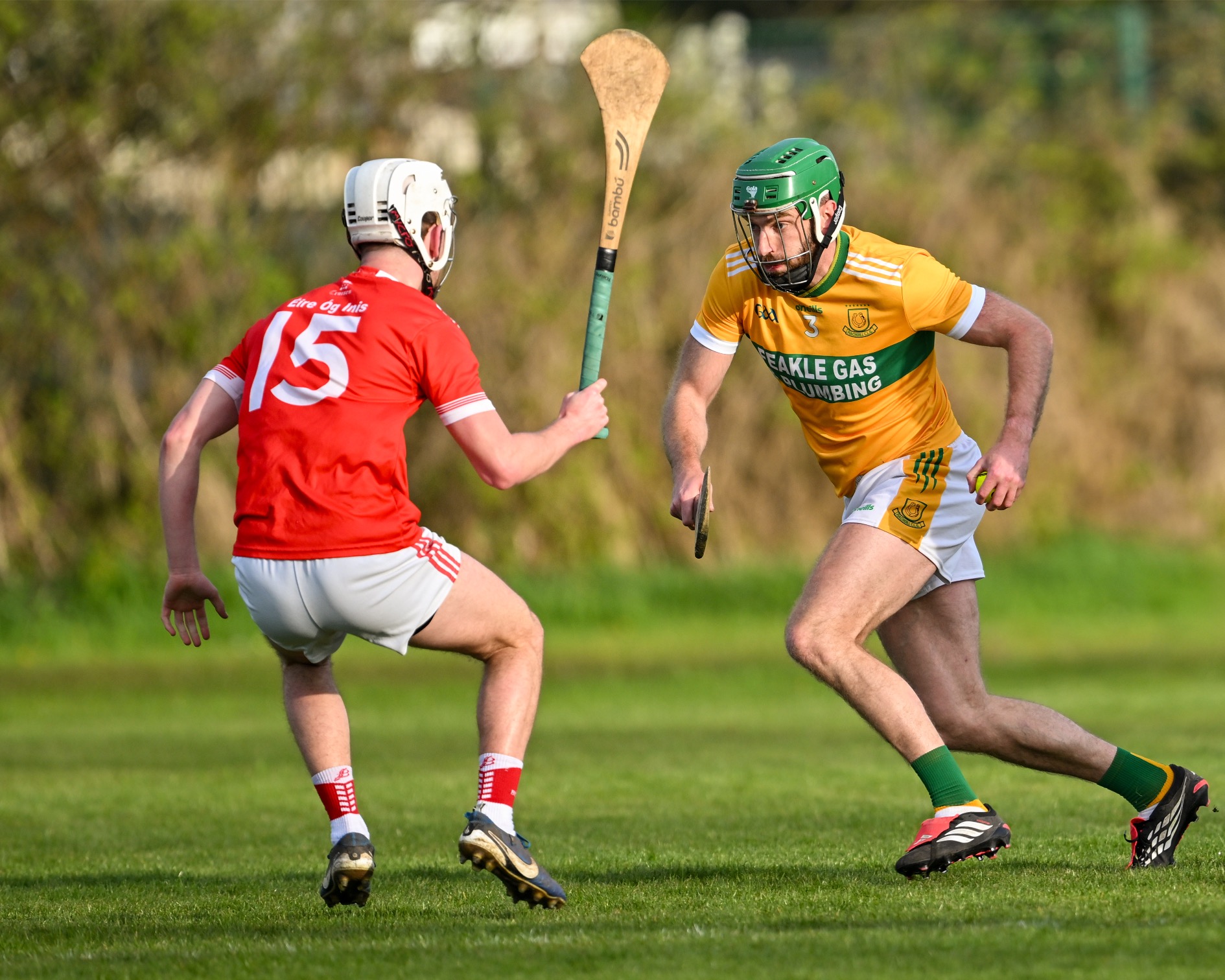 Both sides finished with fourteen men. Oisin Clune received a straight red card and was dismissed in the first half for Feakle. Éire Óg’s Oran Cahill received his marching orders in the second half when he was shown a second yellow card.