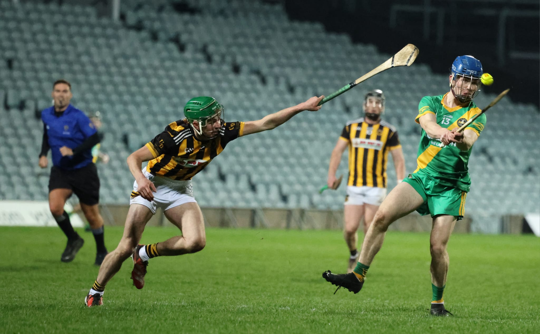 Cormac Murphy finished off arguably the Mills’ best worked score of the evening when Gary Cooney offloaded to Darragh Moroney who hit the ball into space to Murphy to split the posts.