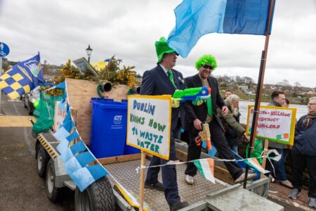 The angling club noted, “Dublin knows how to waste water” while ‘Pipe down Dublin’ was the message from another float.