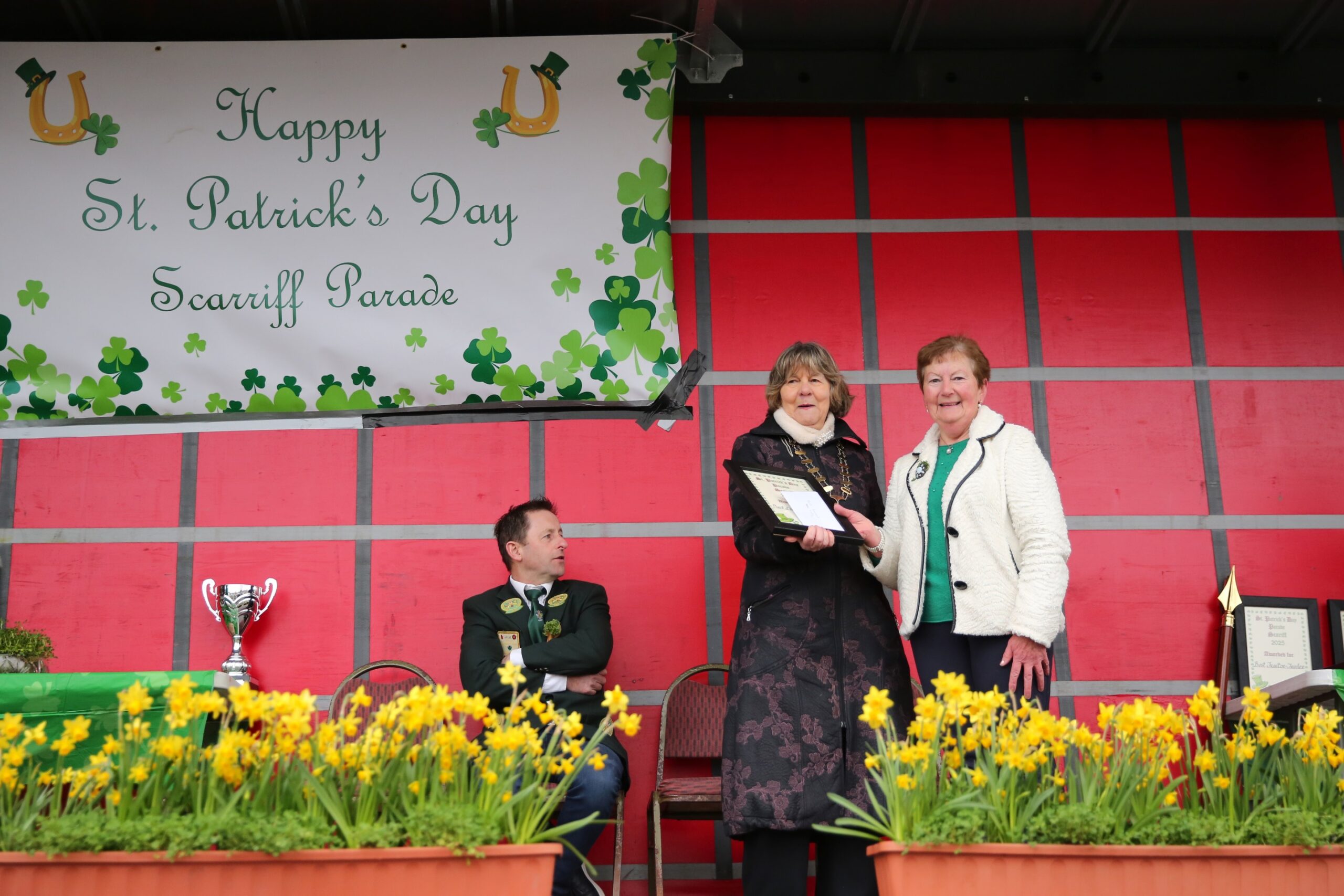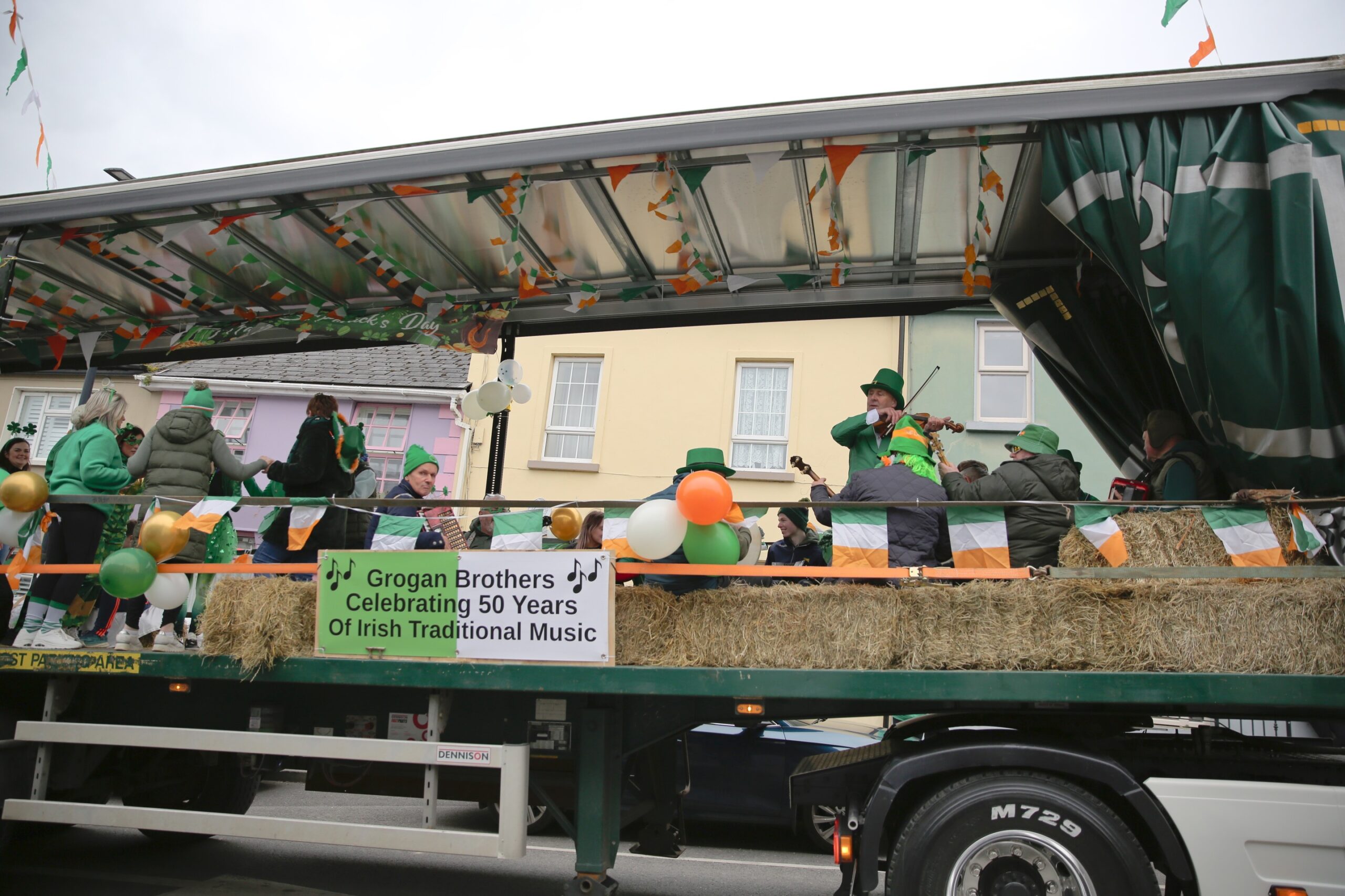 HOMES and businesses of Scariff were decorated for the St Patrickโs Day parade which took place on Monday.