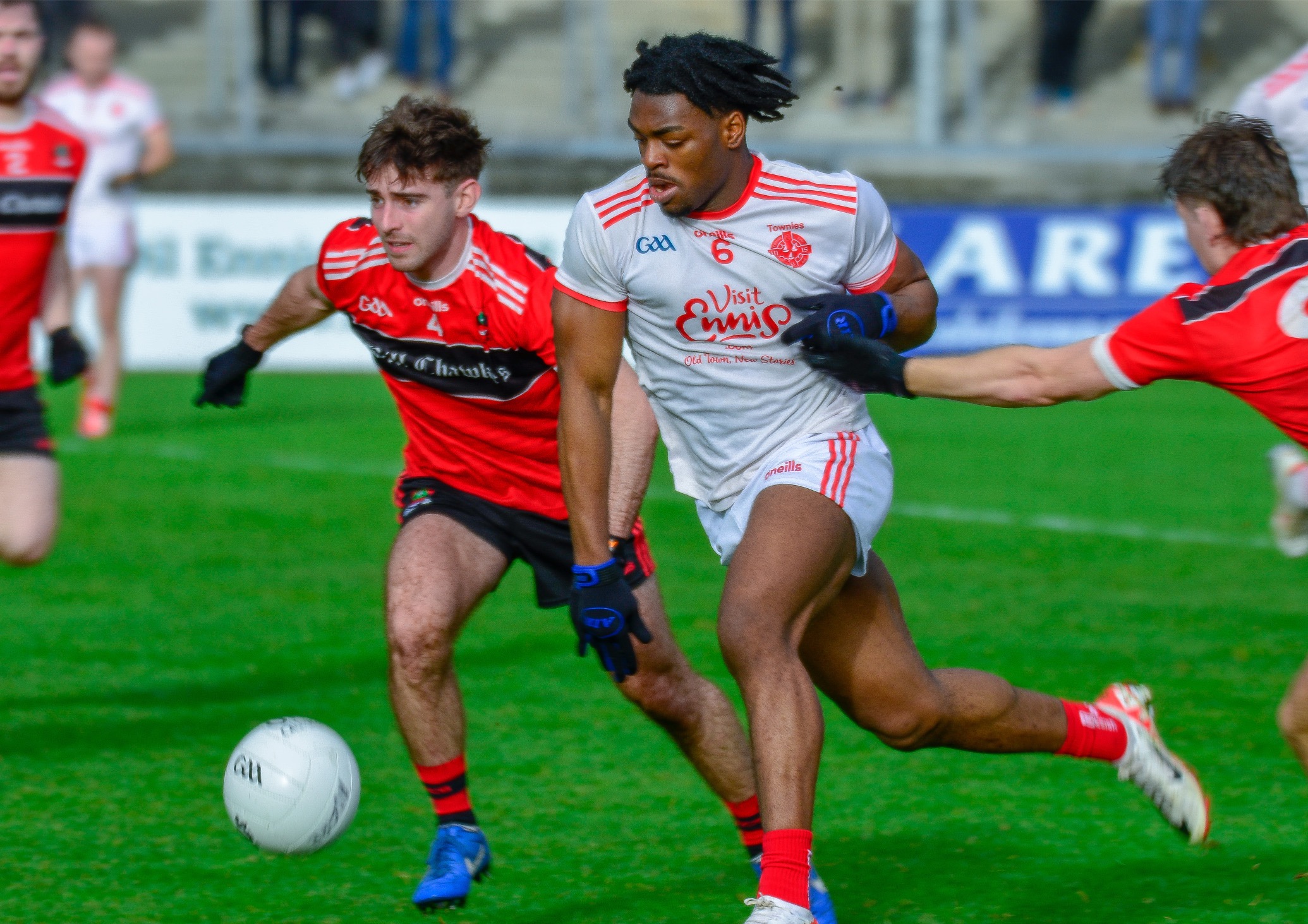 By hunting in packs, Adare applied a high level of pressure on the Éire Óg defence and they found it difficult to break through which limited their ability to power forward and create opportunities, subsequently their danger men in the full forward line were starved of possession for the first half.