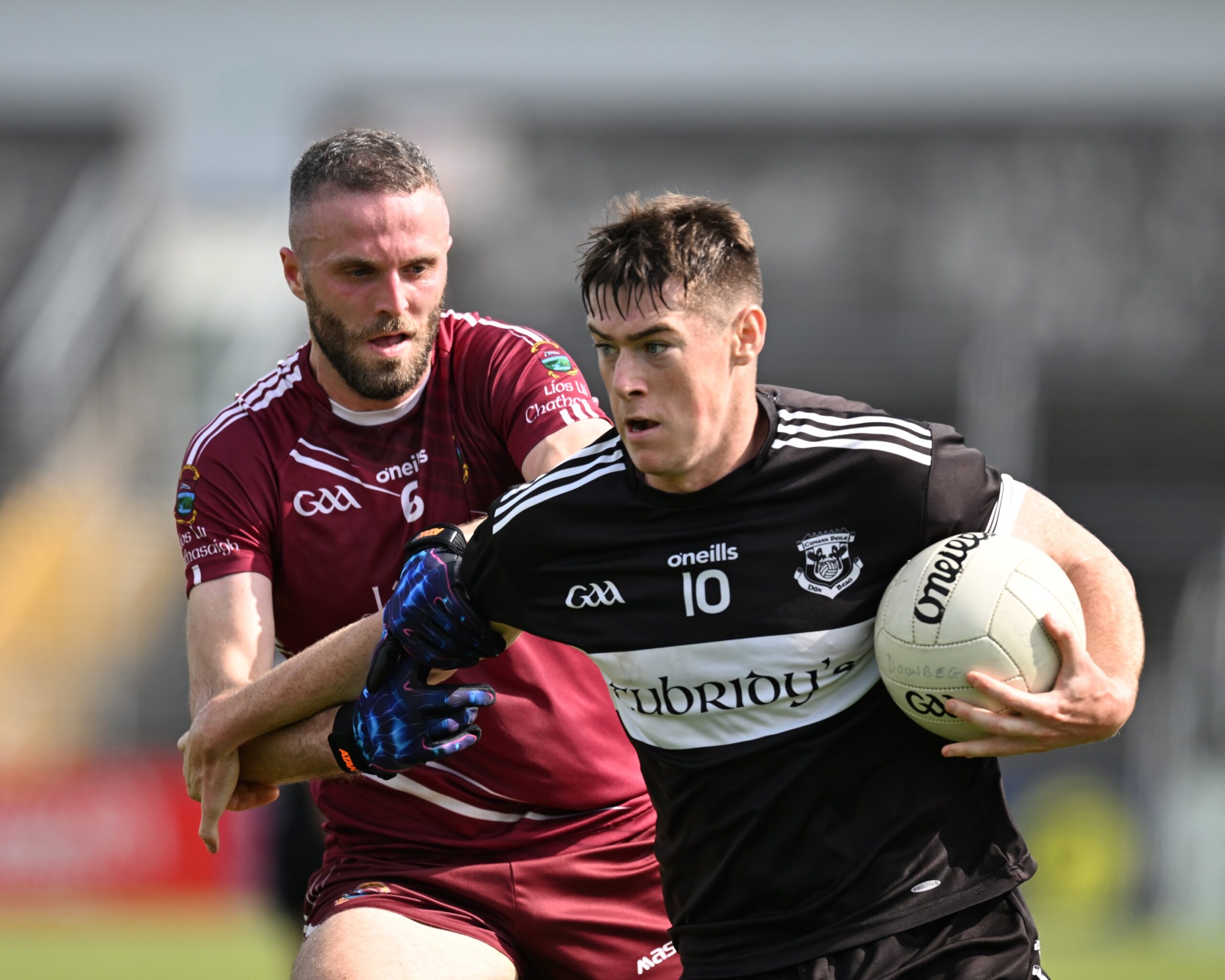 For their first run out in Cusack Park in this year’s championship, Doonbeg struggled to acclimatise to proceedings and were chasing the game from the off. Their main target man David Tubridy was curtailed by Connor Meaney hanging off him.