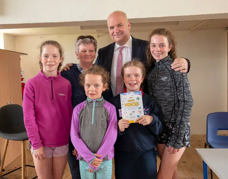 Dr Holohan was the special guest for the launch of COVID Voices, a book of poetry by third class pupils at Scoil na Maighdine Mhuire, sharing their reflections on life during the pandemic. The class of thirty two were guided by teacher, Eamon Curley and special education teacher Fidelma Healy-Eames in putting together the publication, the idea of which was first mooted last October.