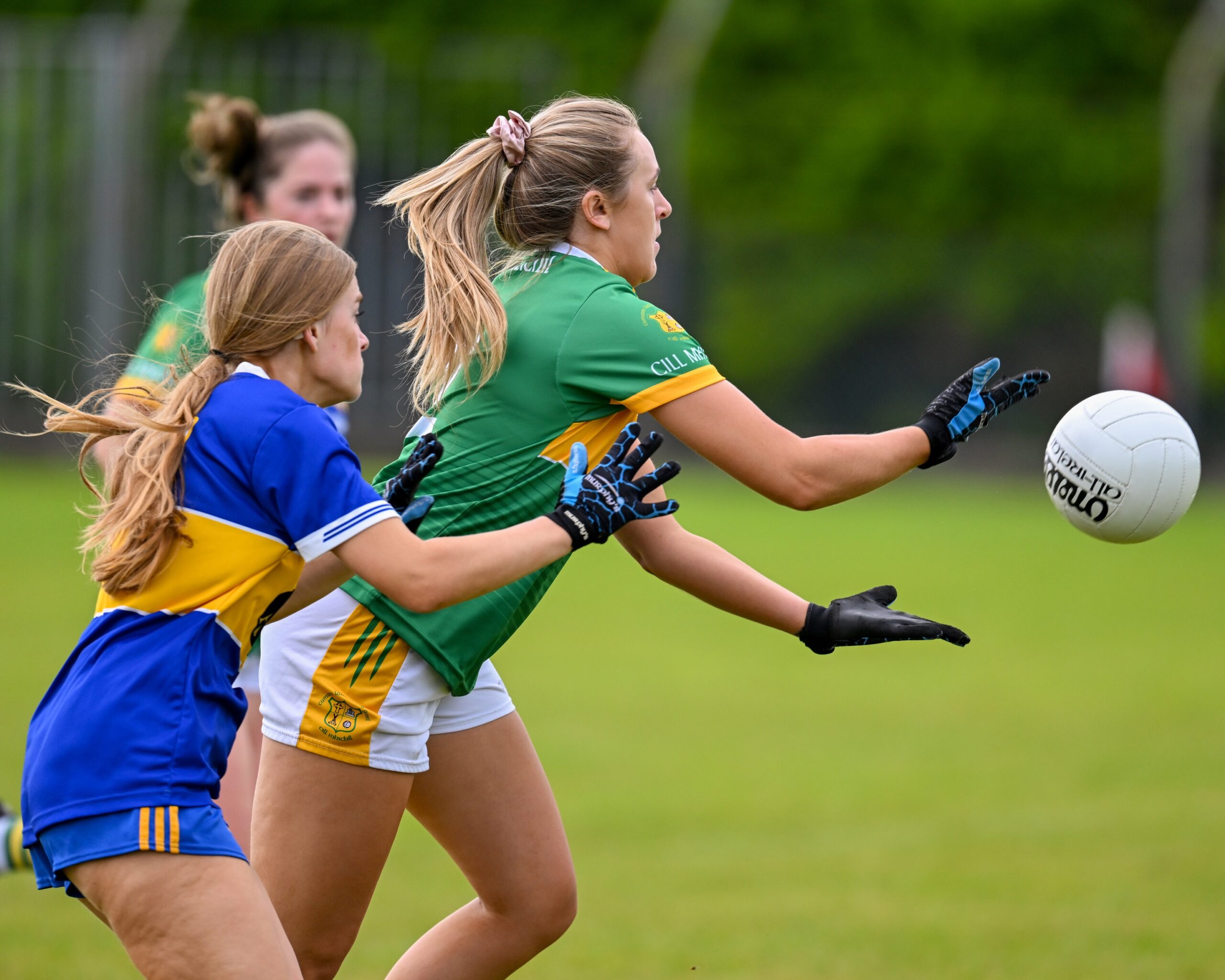 Ava Cotter tries to push off Laura Egan and Dervla Higgins. Photograph: Gerard O’Neill