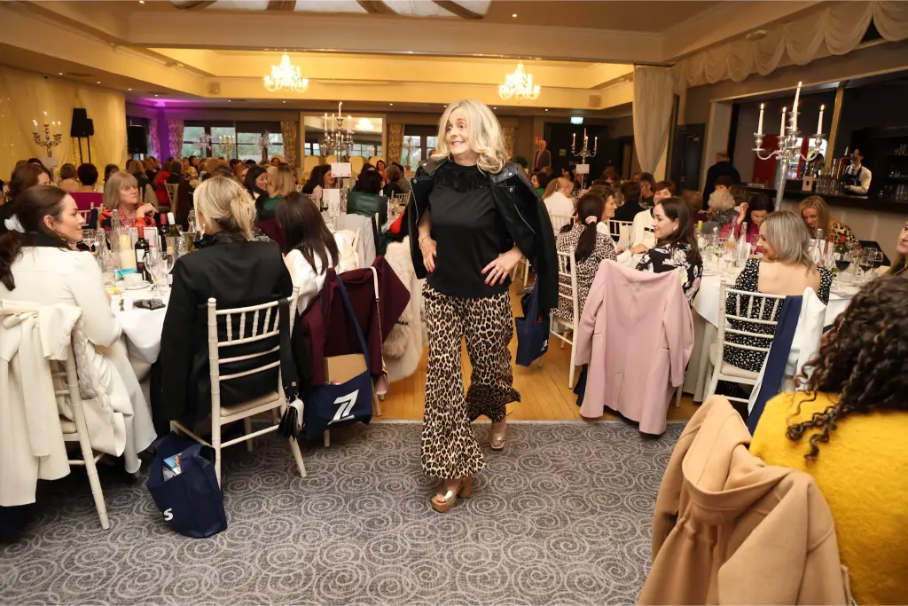 The pre-lunch fashion show featured styles from I Spy Clothing, Carraig Donn, and Joanne’s Killaloe, with local models including parents, past pupils, and long-time supporter Mary Davin.