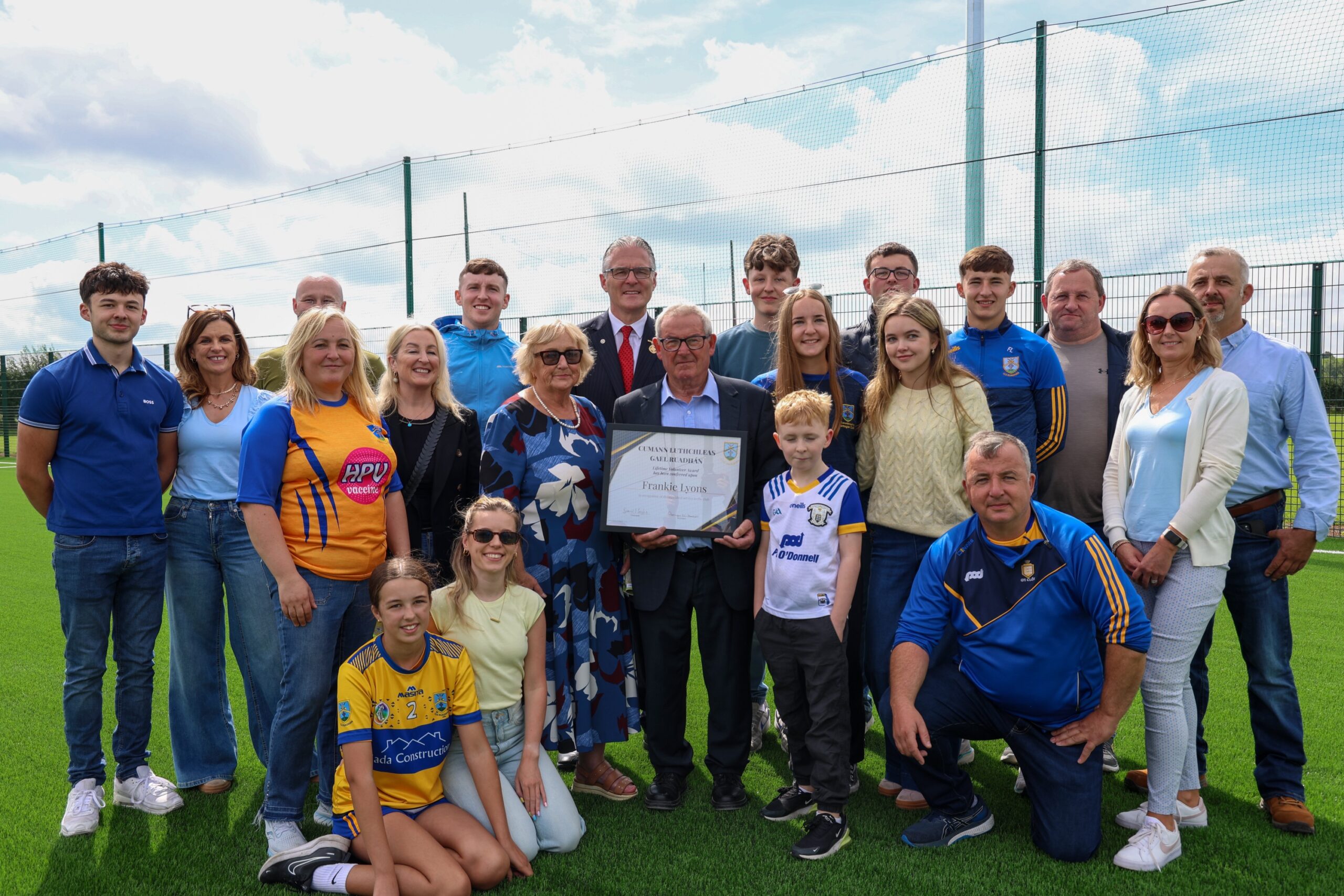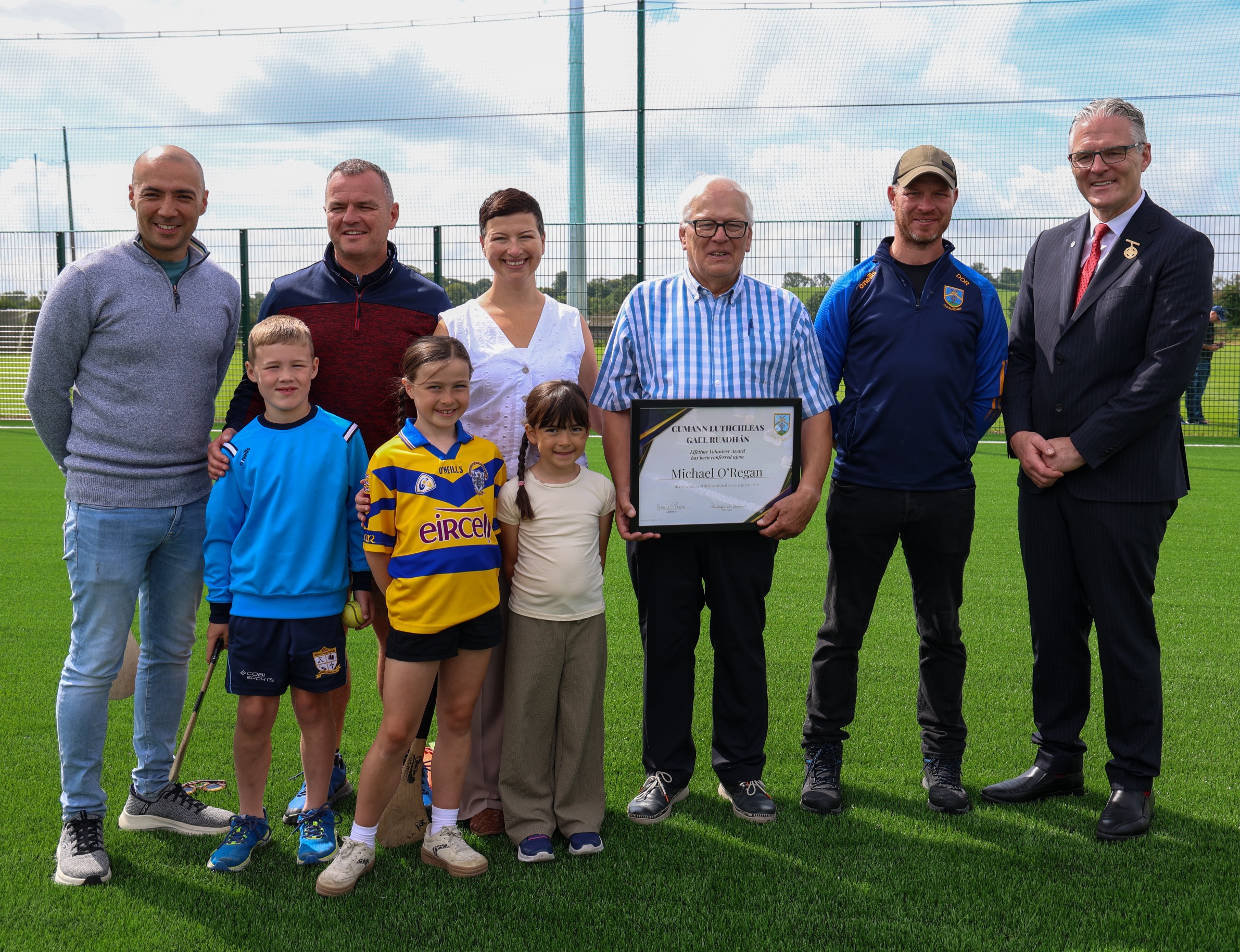 President of the GAA, Jarlath Burns was the guest of honour in Ruan and he presented the quartet with lifetime volunteer awards on behalf of the club. Burns was no stranger to Páirc na nGael in Ruan and was a visitor in 2010 where his club Silverbridge were hosted during the Féile na nGael.