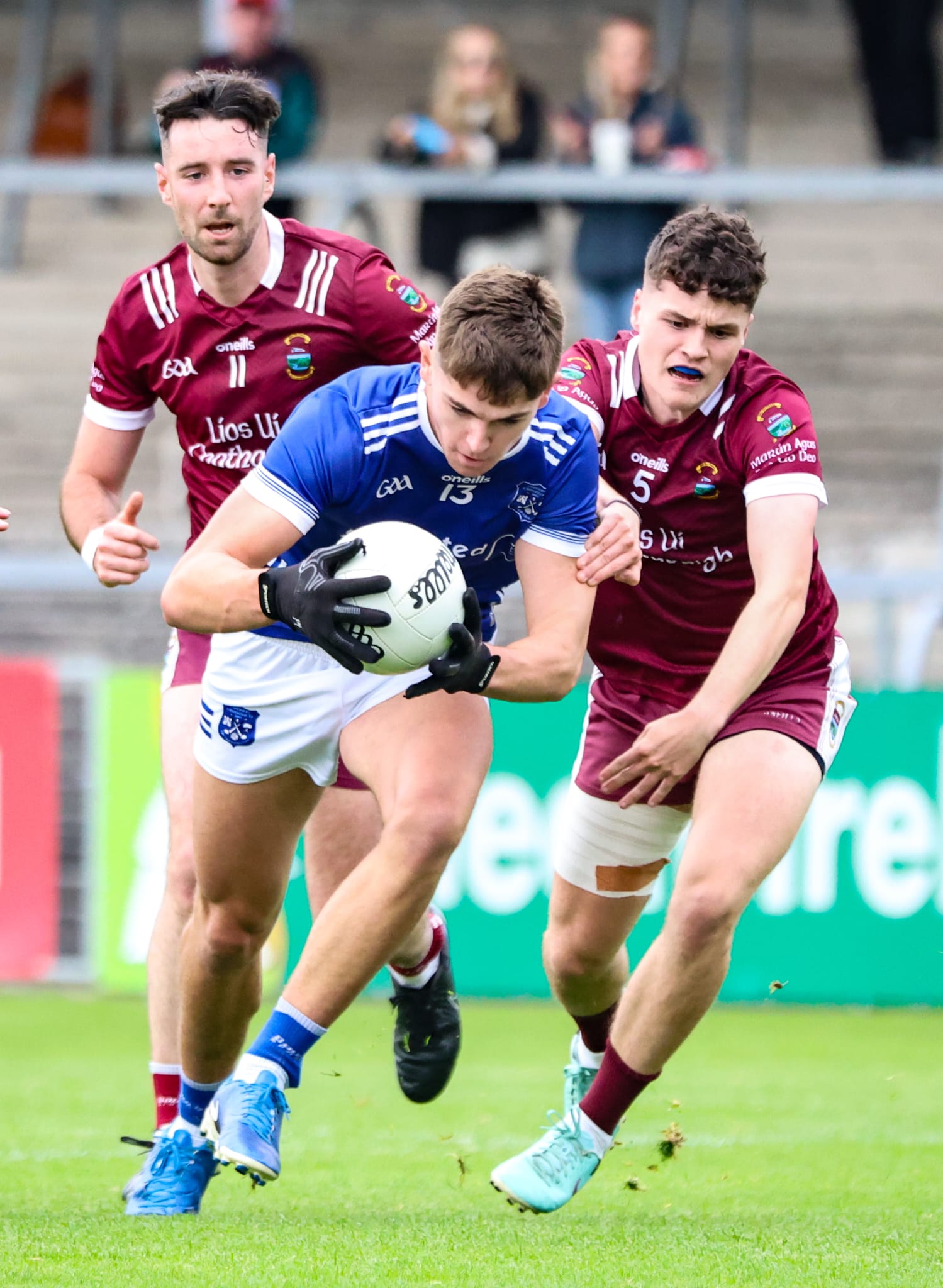 *Jamie Moylan gets away from Niall Kelly, Cian Meaney and Michael Kelly. Photograph: Ruth Griffin