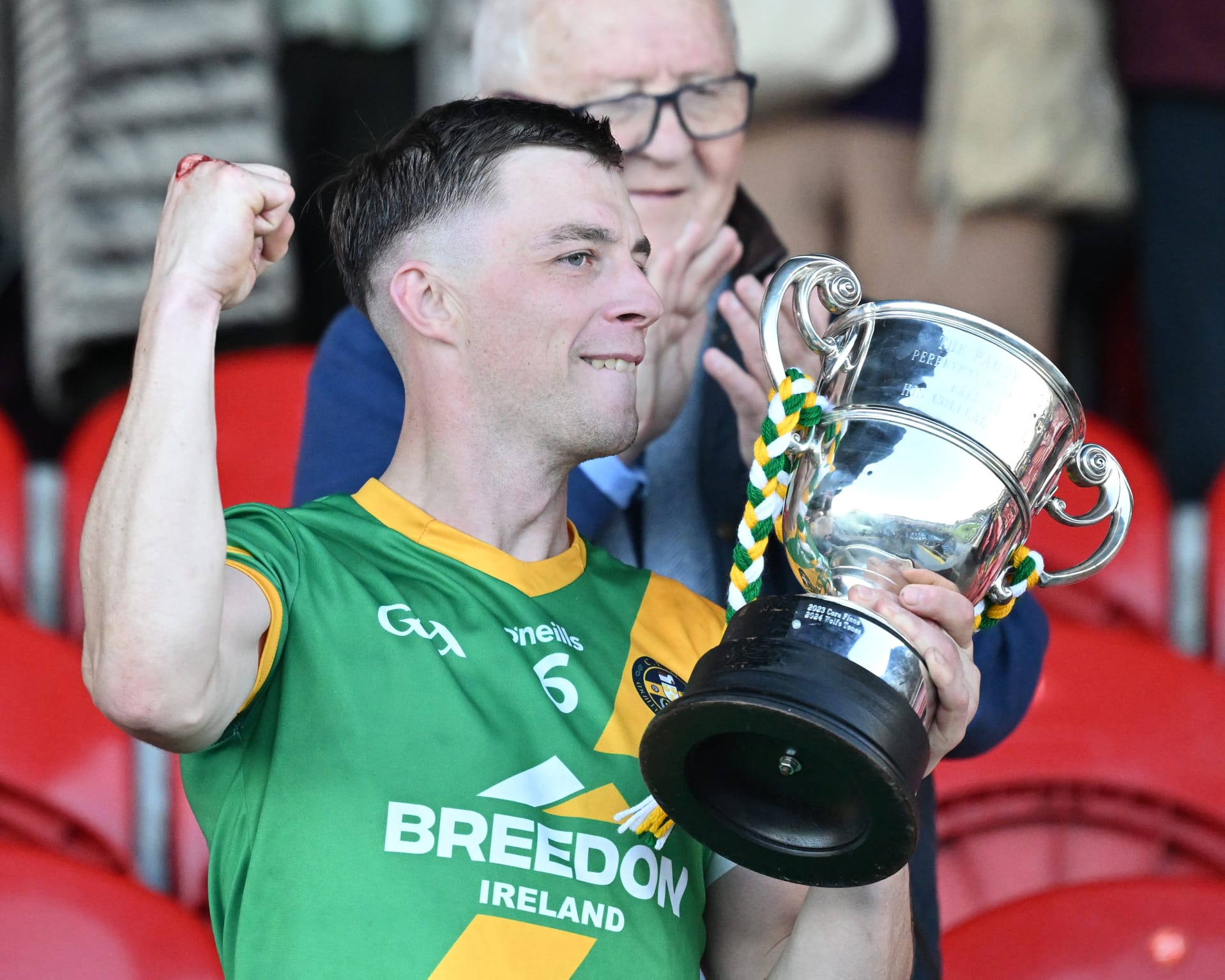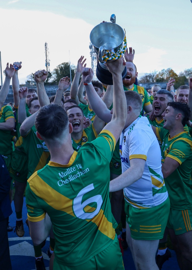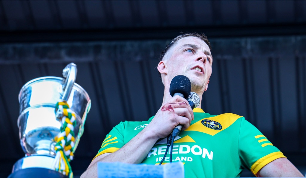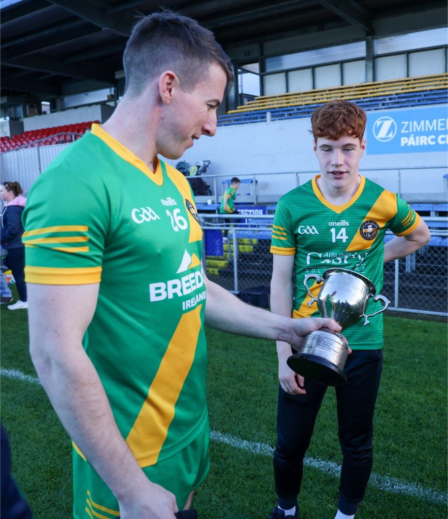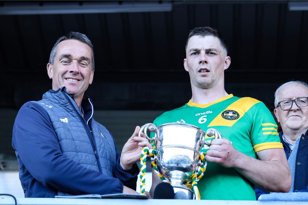 *Aidan O’Gorman lifts the Paddy Browne Cup. Photograph: Gerard O’Neill.