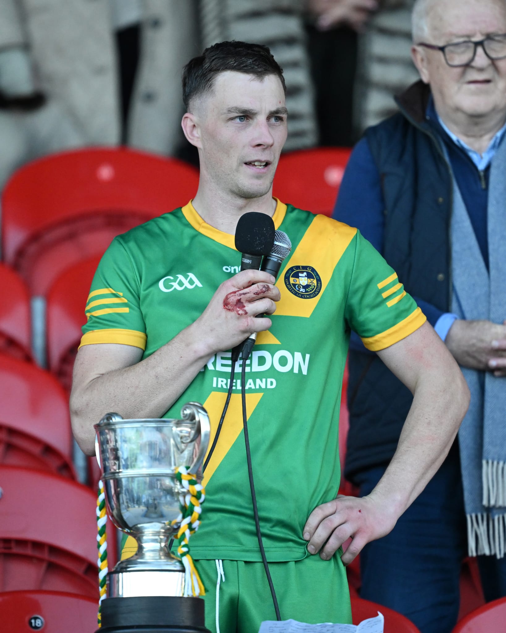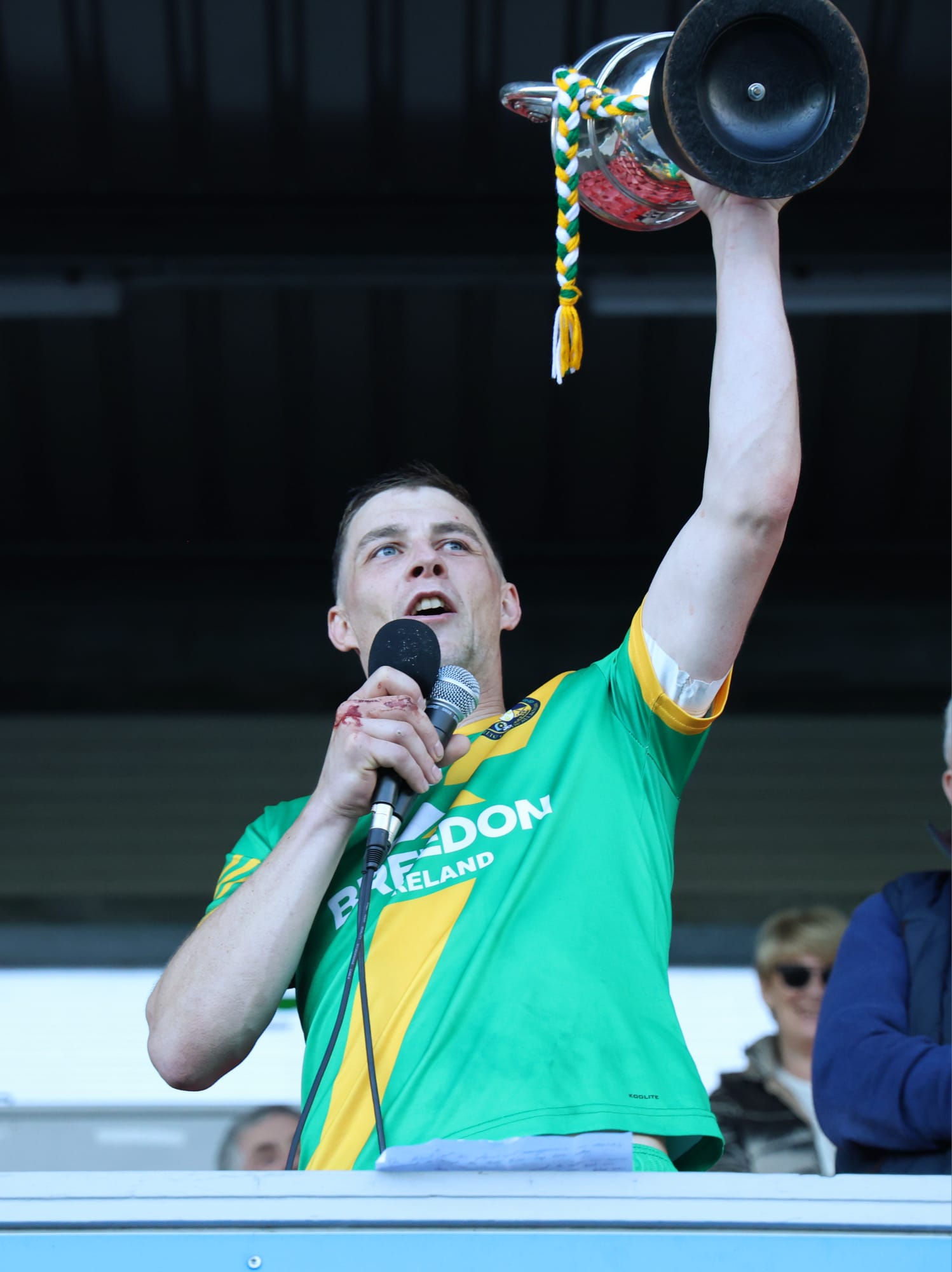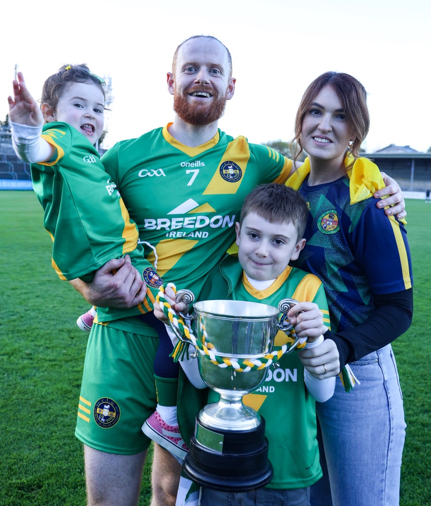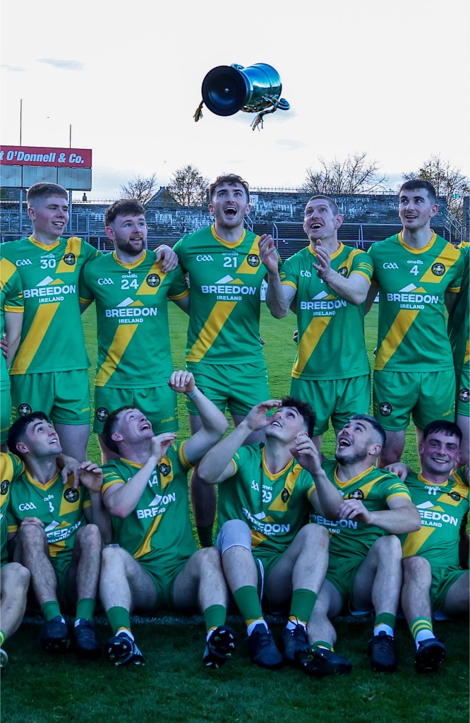 *Aidan O’Gorman lifts the Paddy Browne Cup. Photograph: Gerard O’Neill.