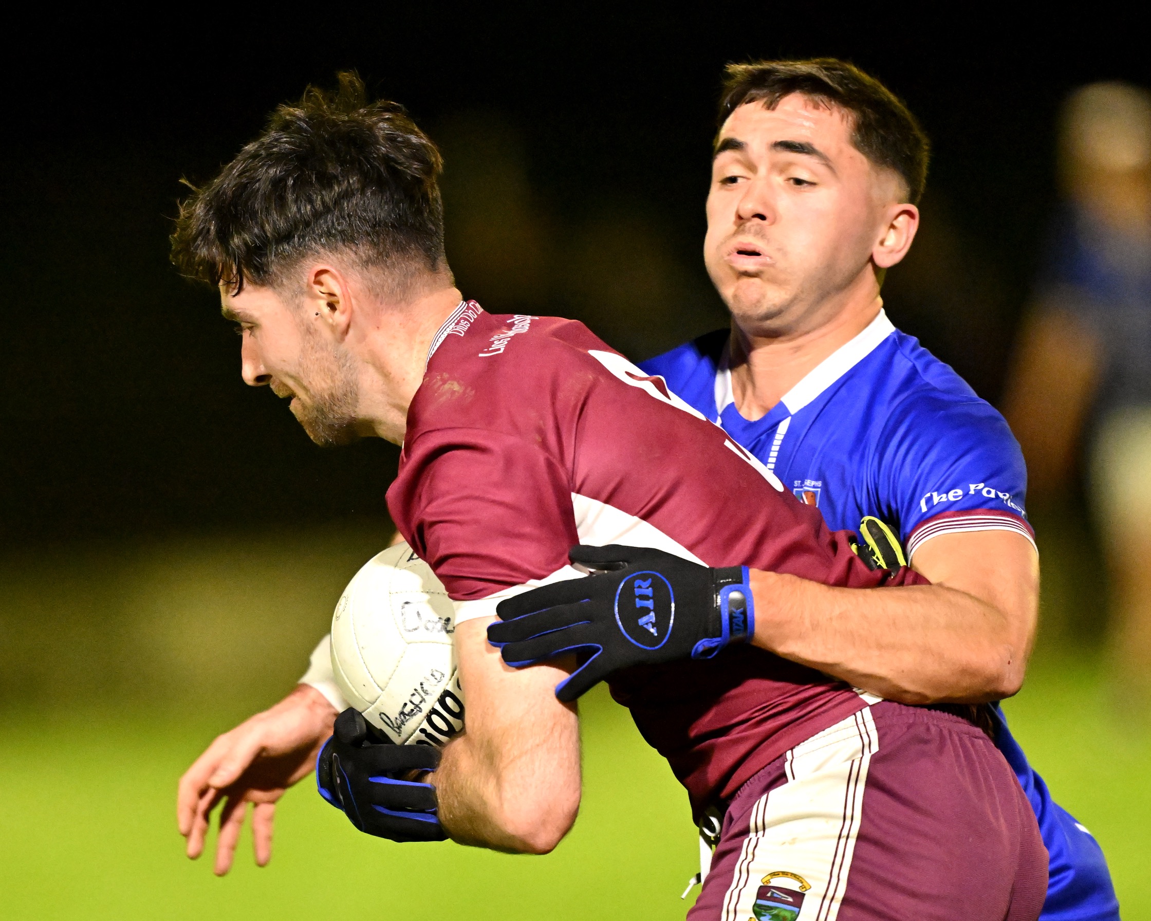 *Paul Frawley of St Joseph’s Miltown gets away from Éire Óg’s Darren O’Brien. Photograph: Gerard O’Neill.