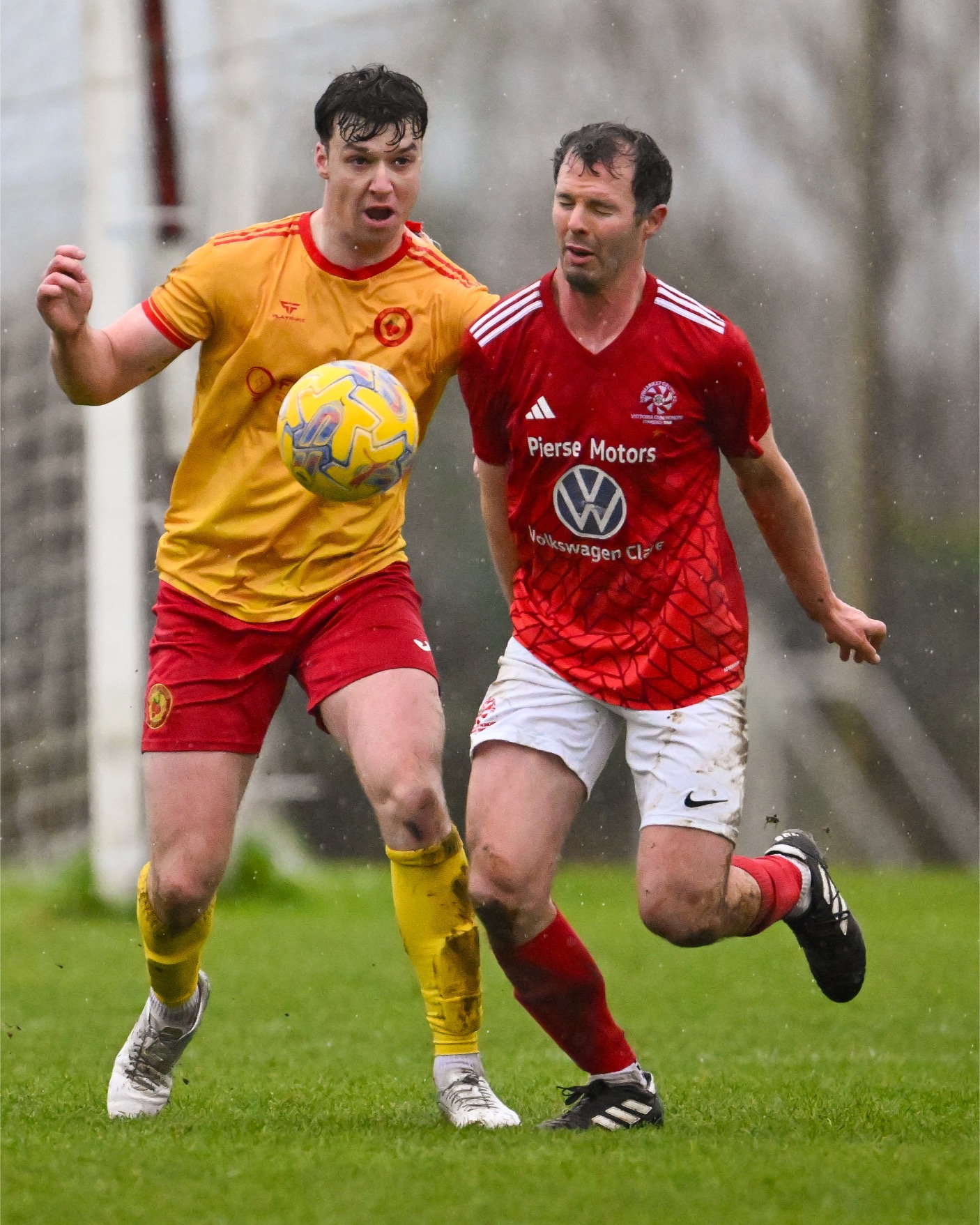 At the other end, the best chances of the half fell to captain Conor Mullen, he headed wide when getting to the end of an incoming free kick on twenty eight minutes. Another cross presented a big chance but Conor Finnucaneโs cross was met at the back post by Ger Myles who failed to hit the target. Ronan Kerin had their last chance of the half when heading the ball over the crossbar on thirty seven minutes.