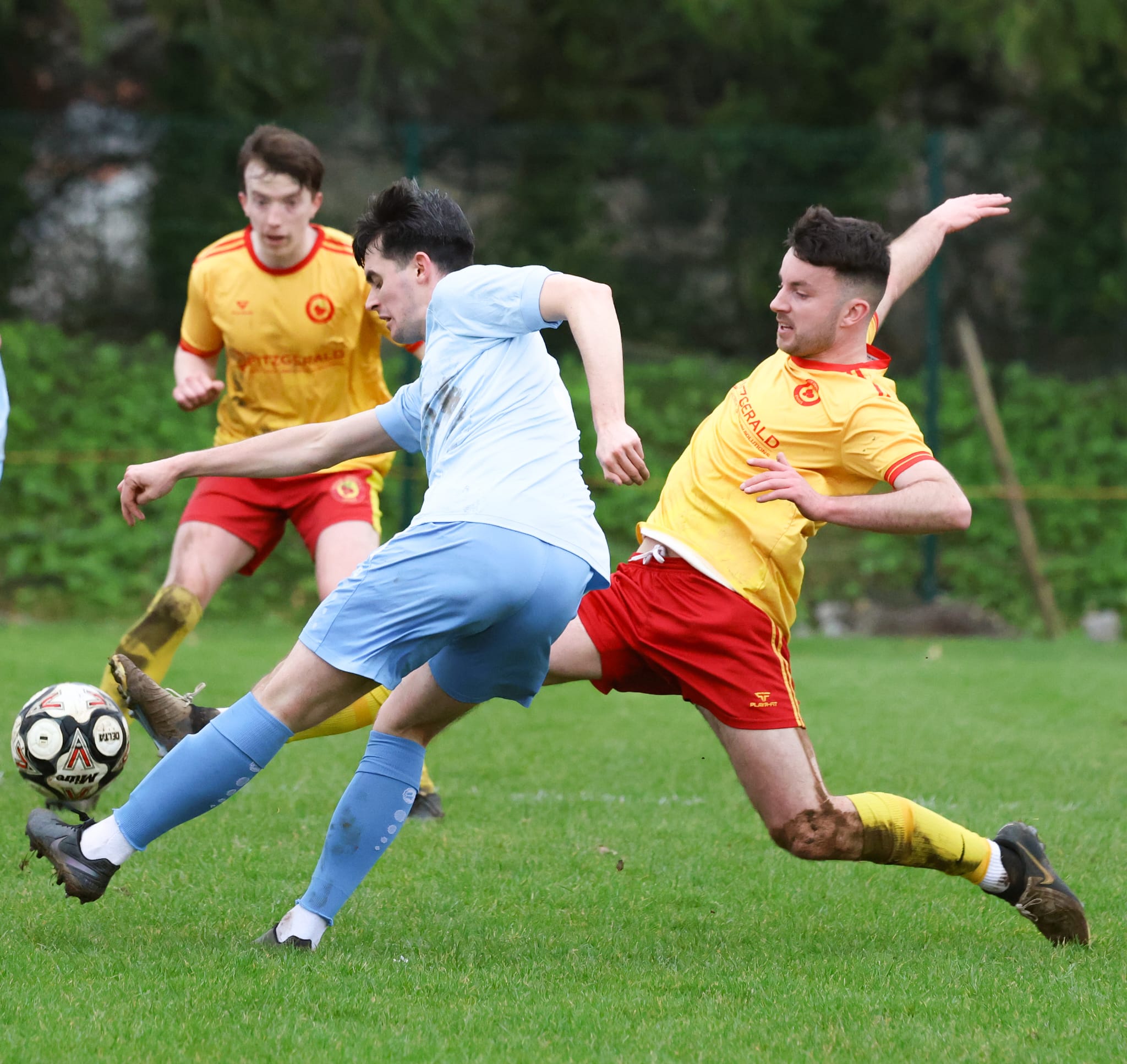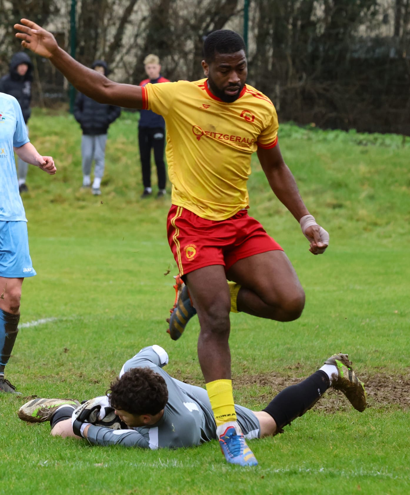 *Avenue Utd’s Eoghan Thynne on the ground. Photograph: Ruth Griffin