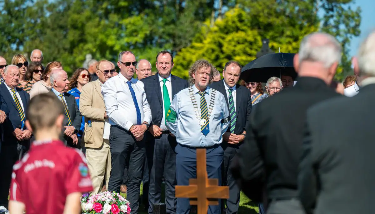 Thousands of mourners were in a sun-drenched Lissycasey on Tuesday and Wednesday for the funeral of PJ Kelly, his native village going all the in paying their respects to a man that they held in the highest of regard. The service included a rendition of ‘Danny Boy’ by his grand-daughter Laura and the recitation of Seamus Heaney’s ‘The Diviner’ by his daughter Alma.