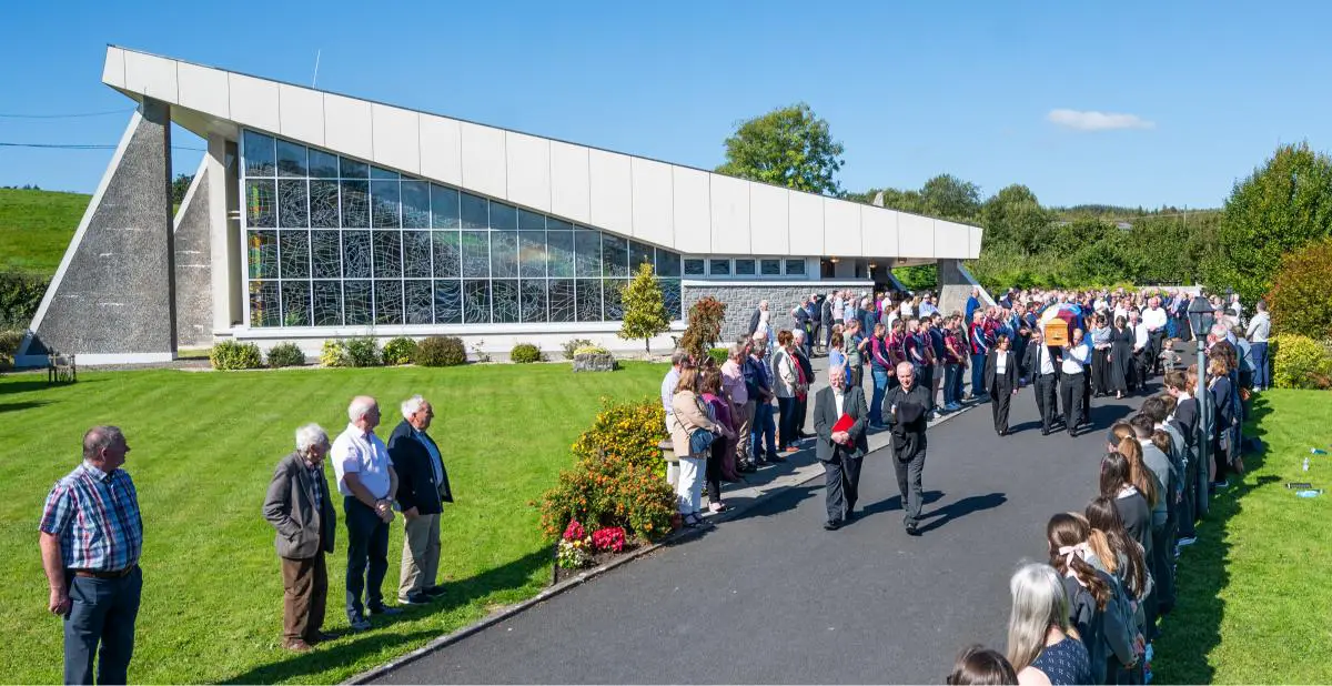 Symbols brought before the altar included a horse to show his love of horses, a red and white jersey belonging to Lisheen where he first taught and a hurley. Both a Lissycasey and Clare flag were draped on the coffin while PJ wore his Clare tie, he was a founding member and first secretary of the Lissycasey GAA club. Prayers were offered for peace, for Government leaders to guide them to work for the people that elected them, for persons that are ill and suffering in communities and to all those working in the health service.