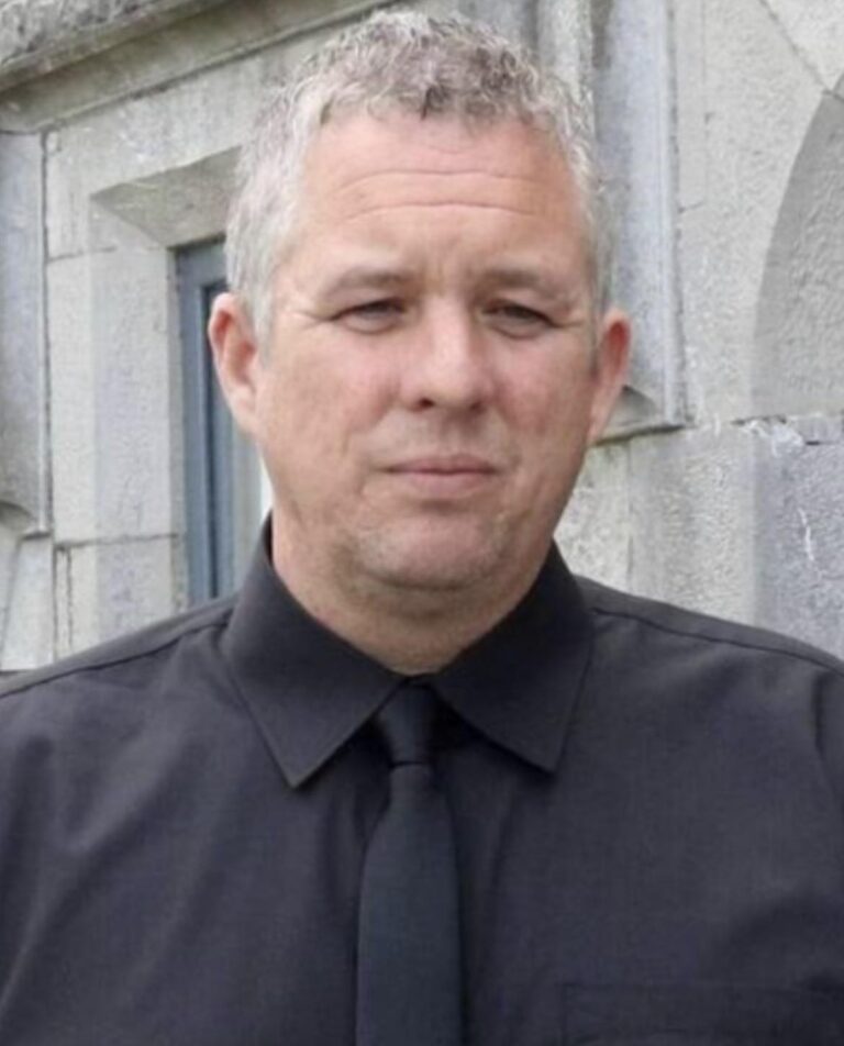 From Cronan Lawn in Shannon, James is survived by his heartbroken family, wife Carol, daughters Meagan and Kate, mother Evelyn, brothers Adrian and Mark, sister Maxine, brothers-in-law, sisters-in-law, uncles, nephews, nieces, cousins, extended family, neighbours and his many friends. He is predeceased by his beloved daughter Aoife and father Jim.