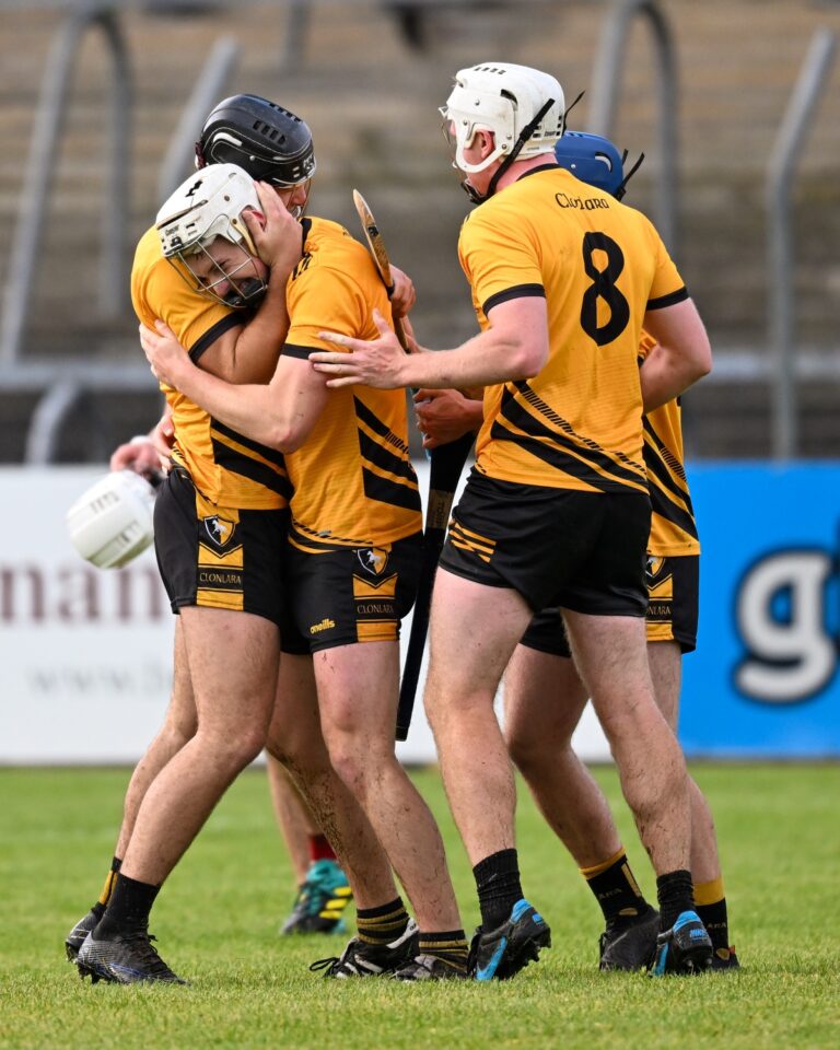 *Clonlara players celebrate reaching the semi-finals. Photograph: Gerard O’Neill