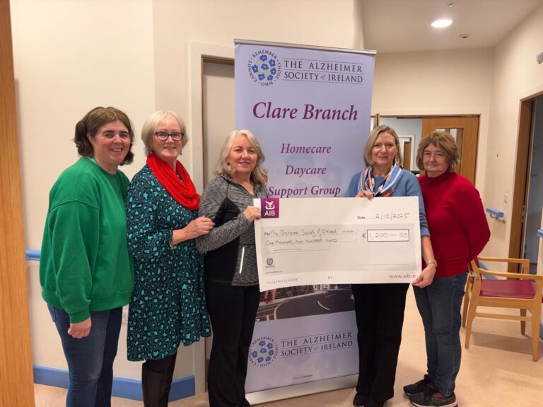 Proceeds from a Céilí session held in Toonagh at the end of September raised €1,200 for the Clare branch of the Alzheimer Society which is based in Cahercalla.