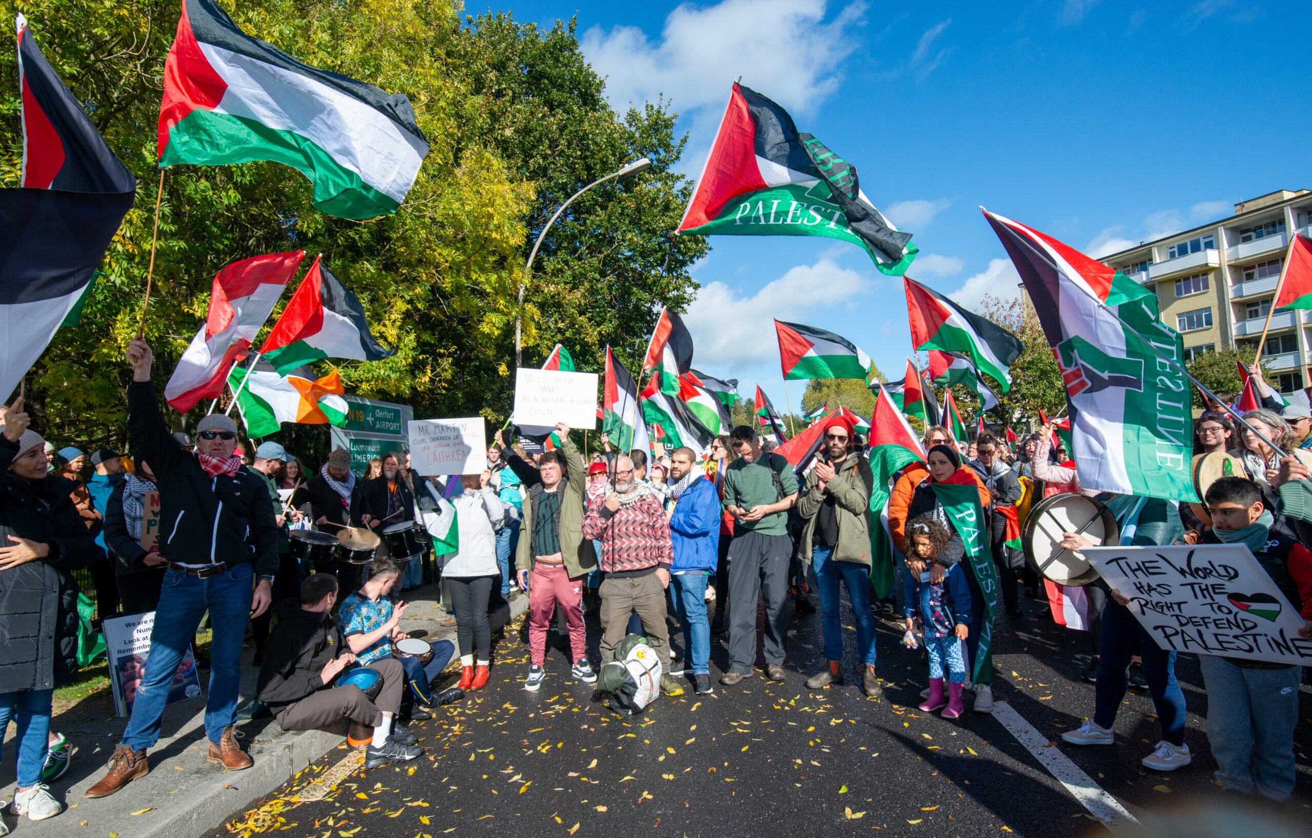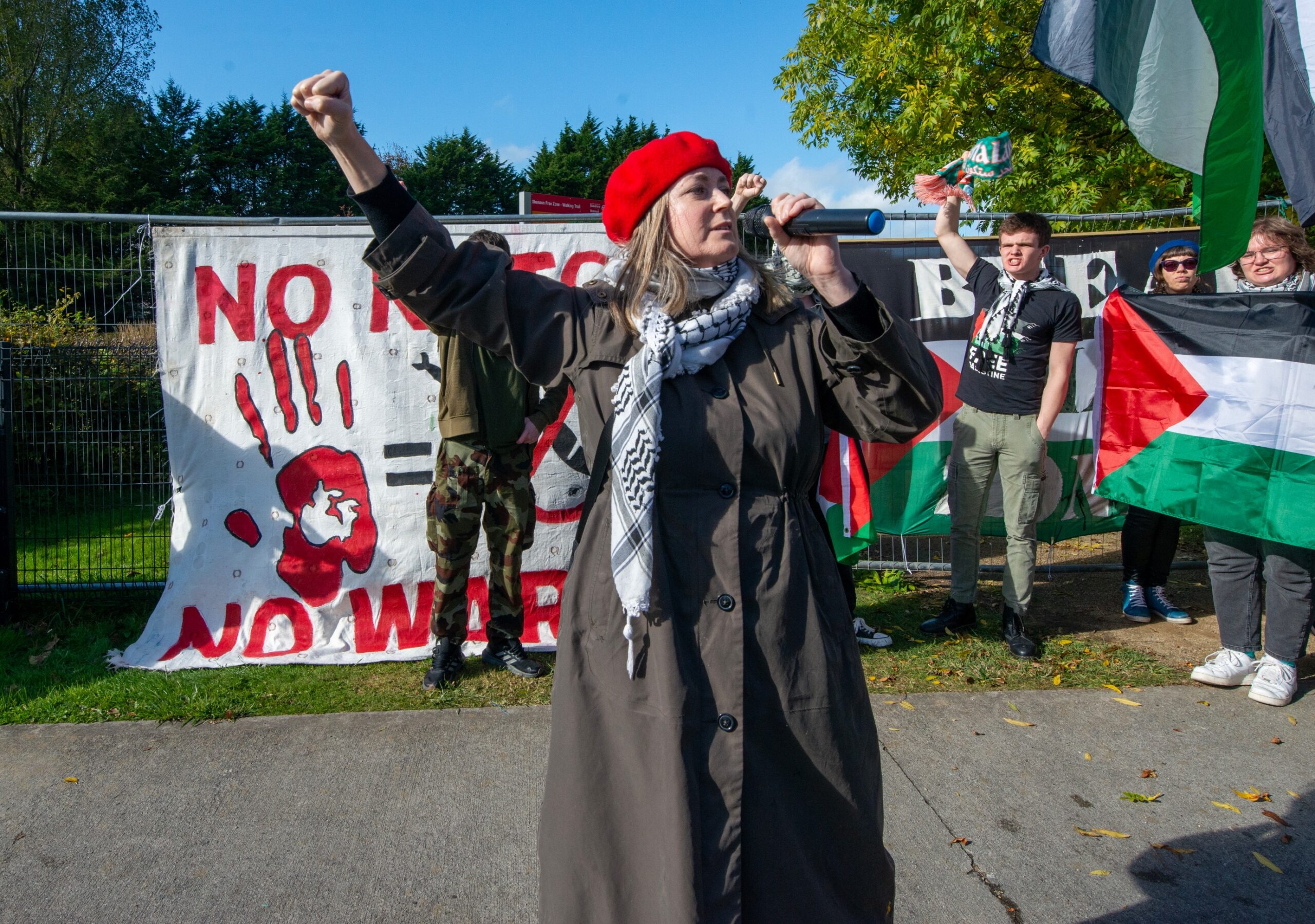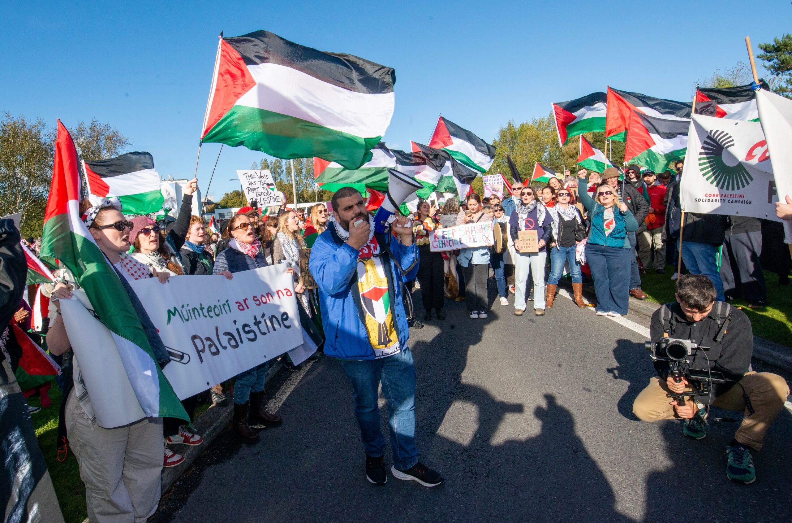 Pro-Palestinian Groups including Shannonwatch, Cairde Palestine Belfast and Mothers Against Genocide were among those organising the protest which was attended by political figures such as MEP, Luke ‘Ming’ Flanagan (IND), Dun Laoghaire TD Richard Boyd Barrett (PBP/SOL) and Cork North-Central TD, Mick Barry (PBP/SOL). By 2pm on Saturday, the estimated crowd was 1,200.