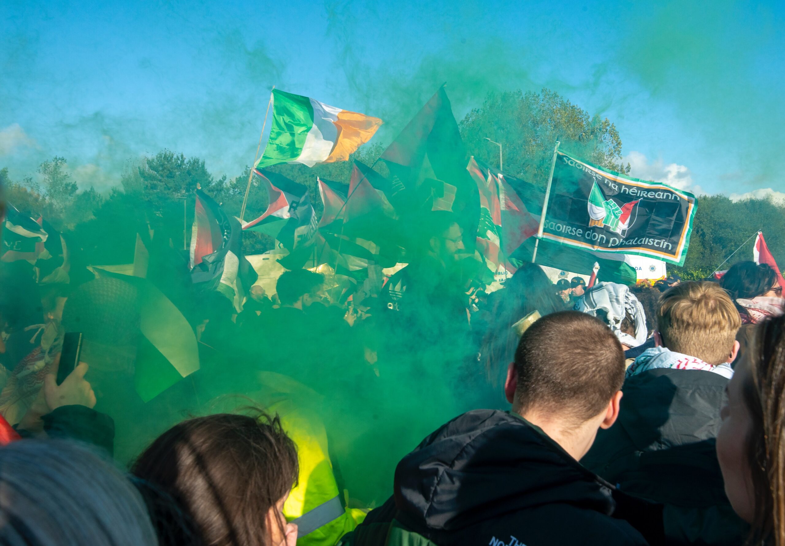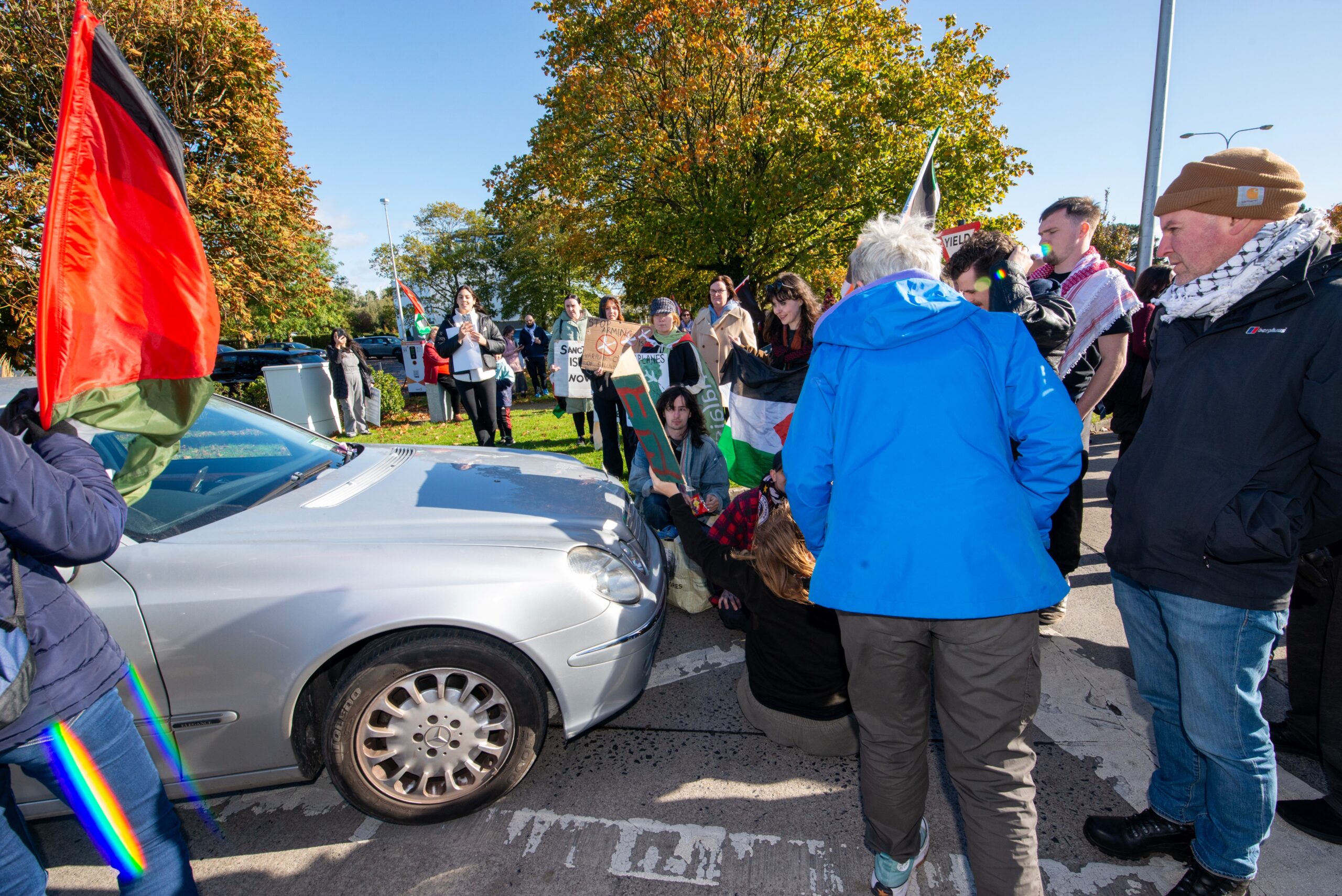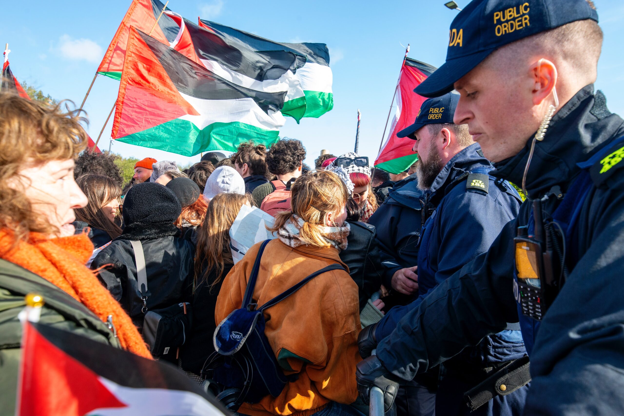 Pro-Palestinian Groups including Shannonwatch, Cairde Palestine Belfast and Mothers Against Genocide were among those organising the protest which was attended by political figures such as MEP, Luke ‘Ming’ Flanagan (IND), Dun Laoghaire TD Richard Boyd Barrett (PBP/SOL) and Cork North-Central TD, Mick Barry (PBP/SOL). By 2pm on Saturday, the estimated crowd was 1,200.