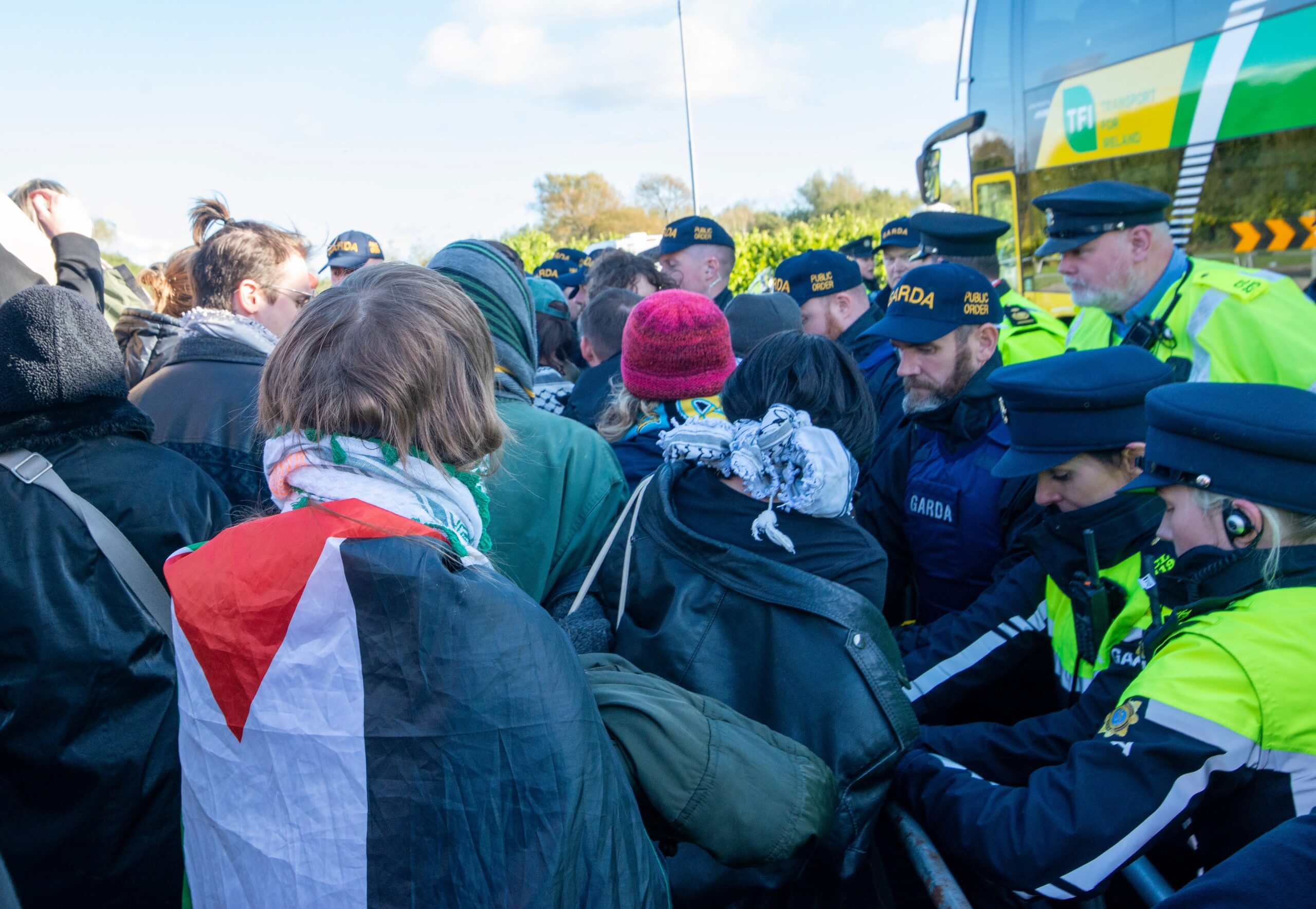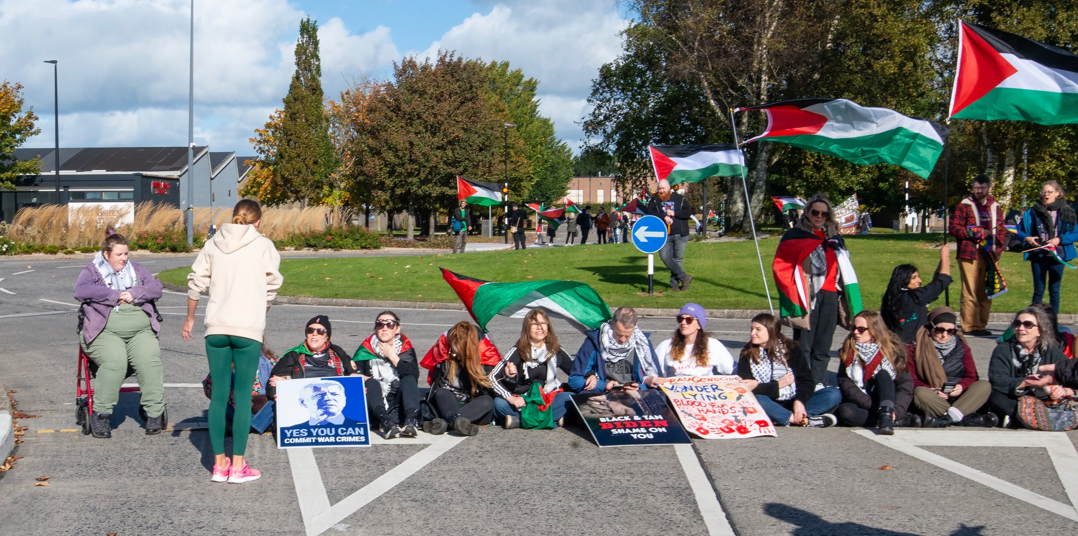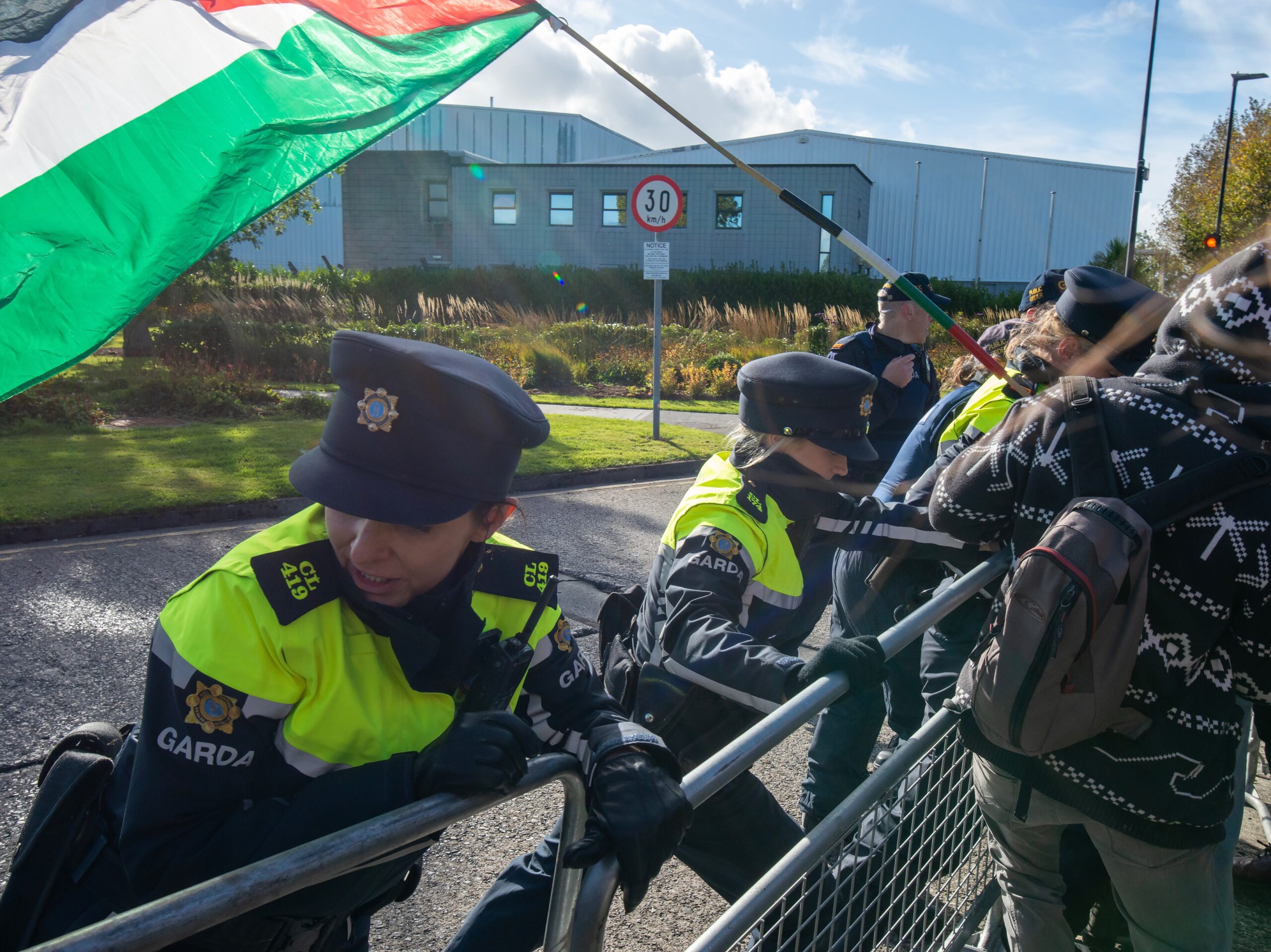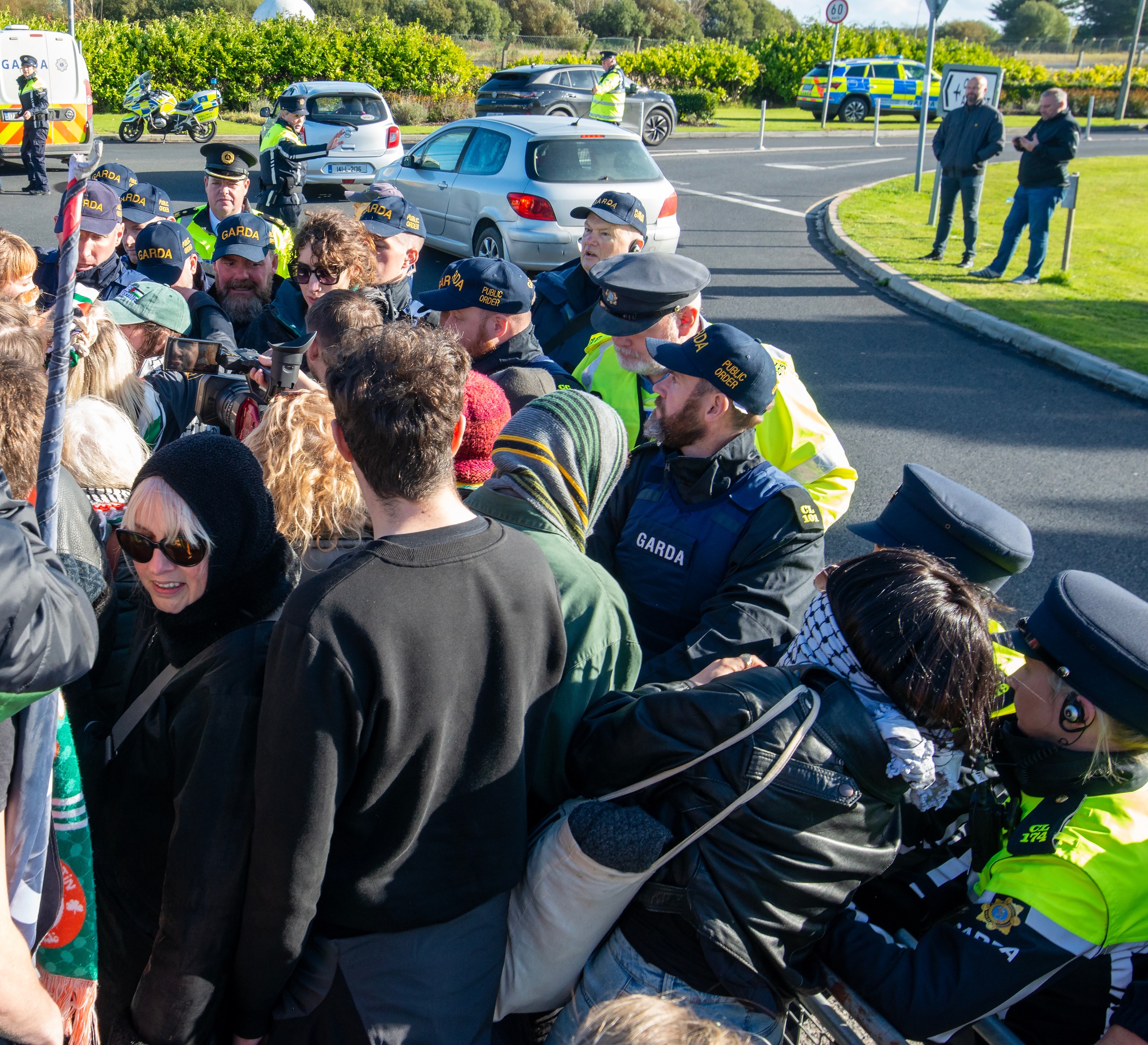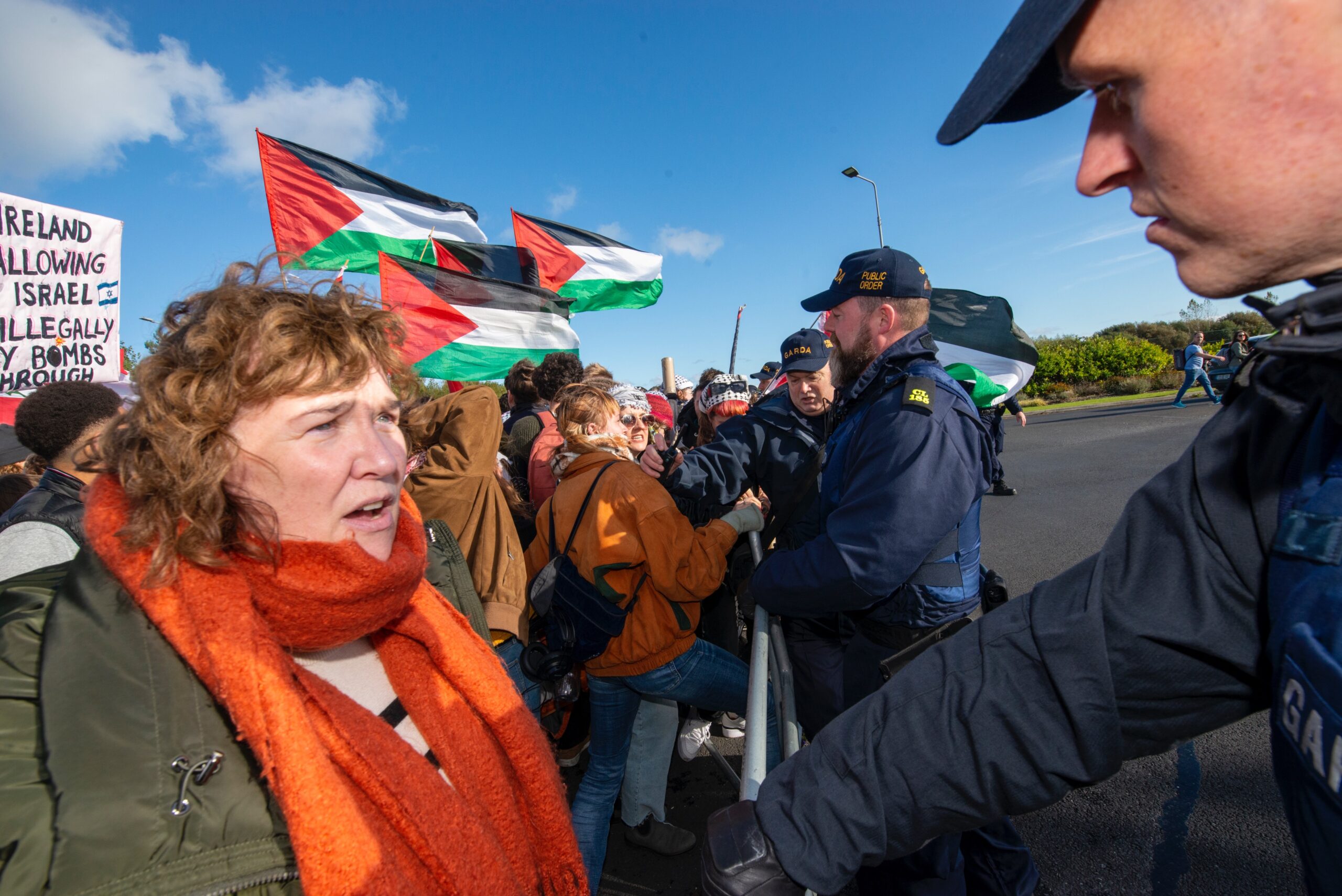Gardaí had been expecting a significant attendance for the protest and limited access to one section of the N19 access road to Shannon Airport from early on Saturday morning. Vehicles accessing Shannon Airport were inspected by Gardaí at checkpoints from Drumgeely to the Airport. Passengers were redirected through Ballymurtagh and Shannon Industrial Estate to ensure they made their flights on time.