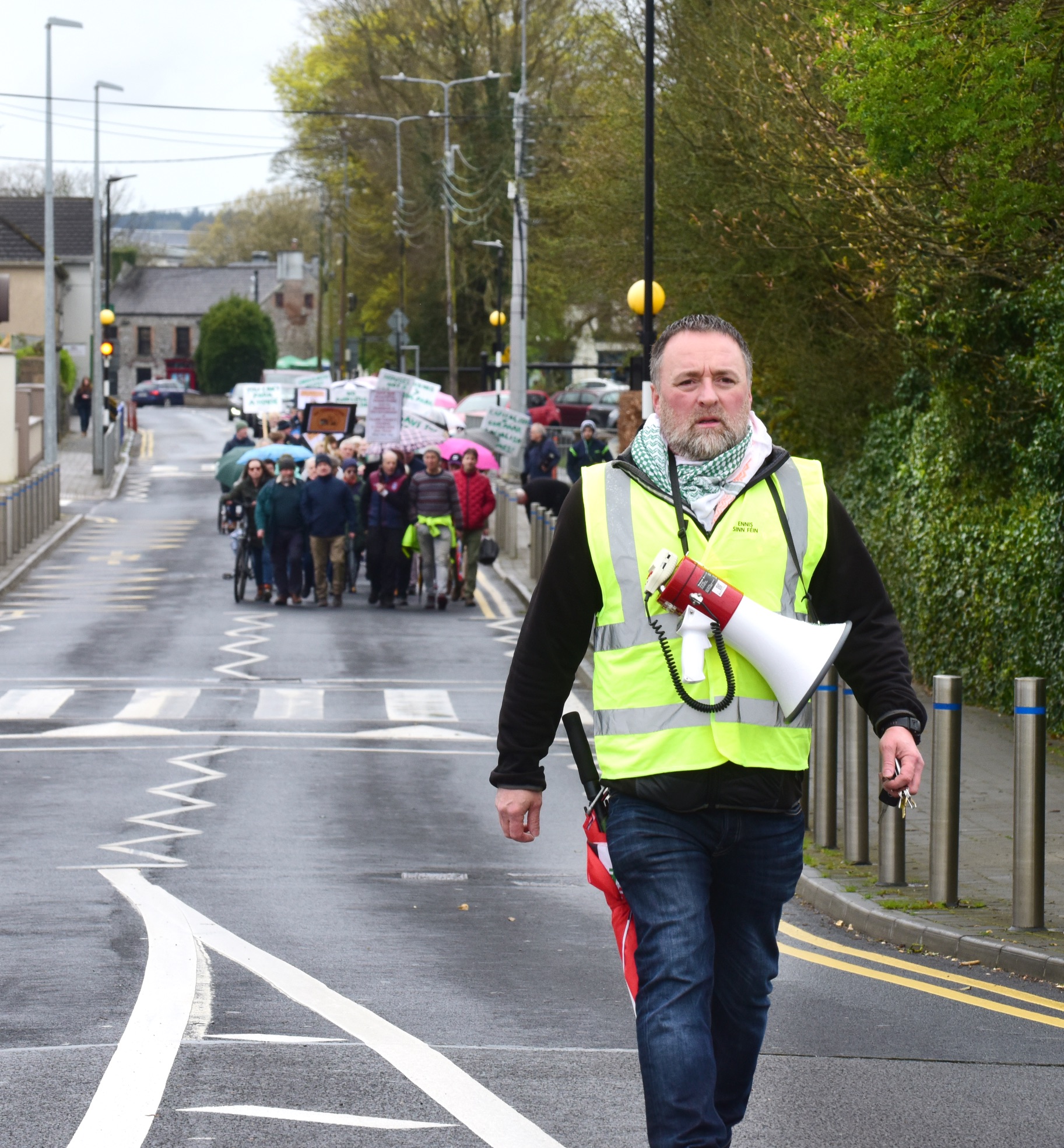 It was a peaceful protest as they moved to Harmony Row, through Lifford and onto the New Road where they convened at the headquarters of Clare County Council where they were joined by members of the Clare Leader Forum.