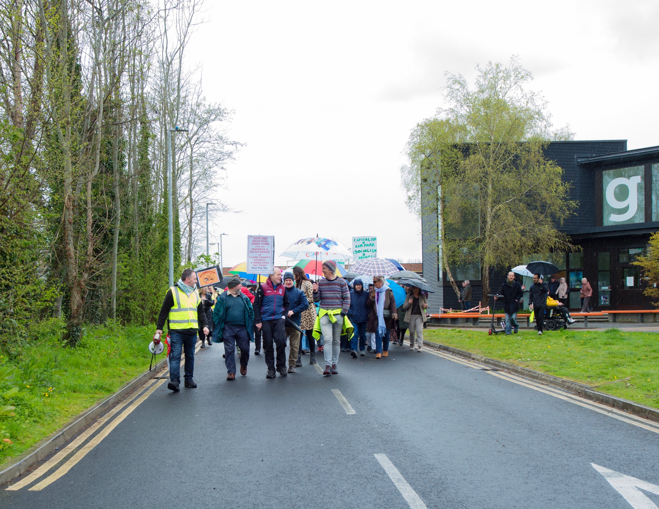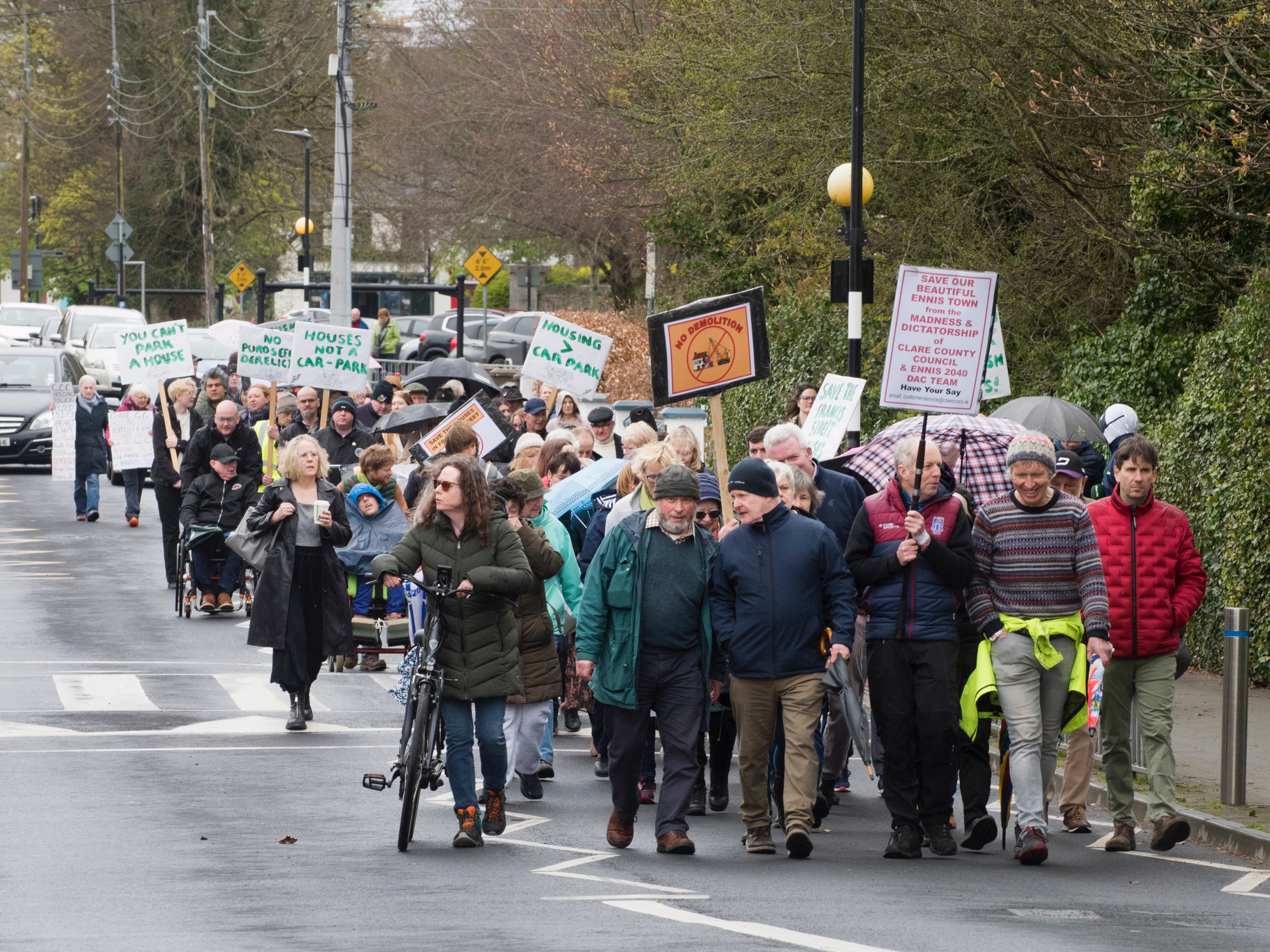 Protestors gathered from 12:30pm outside glór and began moving shortly after 1:15pm, leaving the cultural centre, passing the site earmarked for the temporary car park and the Francis St cottages, heading towards the Friary and onto Abbey Street where another €25m development is planned as part of the Ennis 2040 Strategy.
